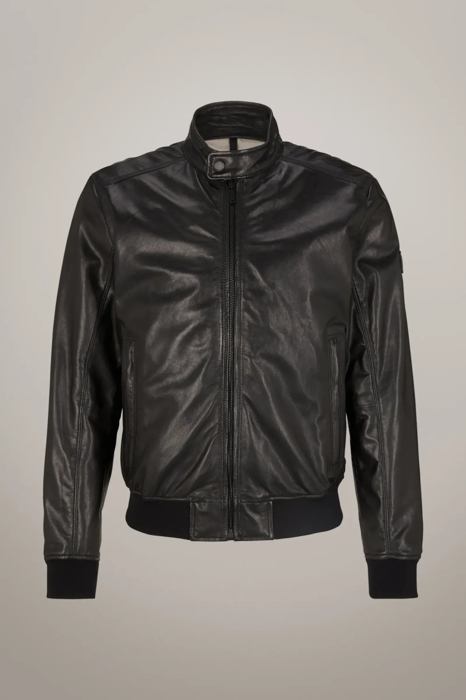 Einen markanten Twist in den Look bringt die Lederjacke Bornie aus einem soften, leicht genarbten Nappaleder. Der Stehkragen mit Druckknopf, ein langer Zipper und die passenden Taschen akzentuieren das Design.