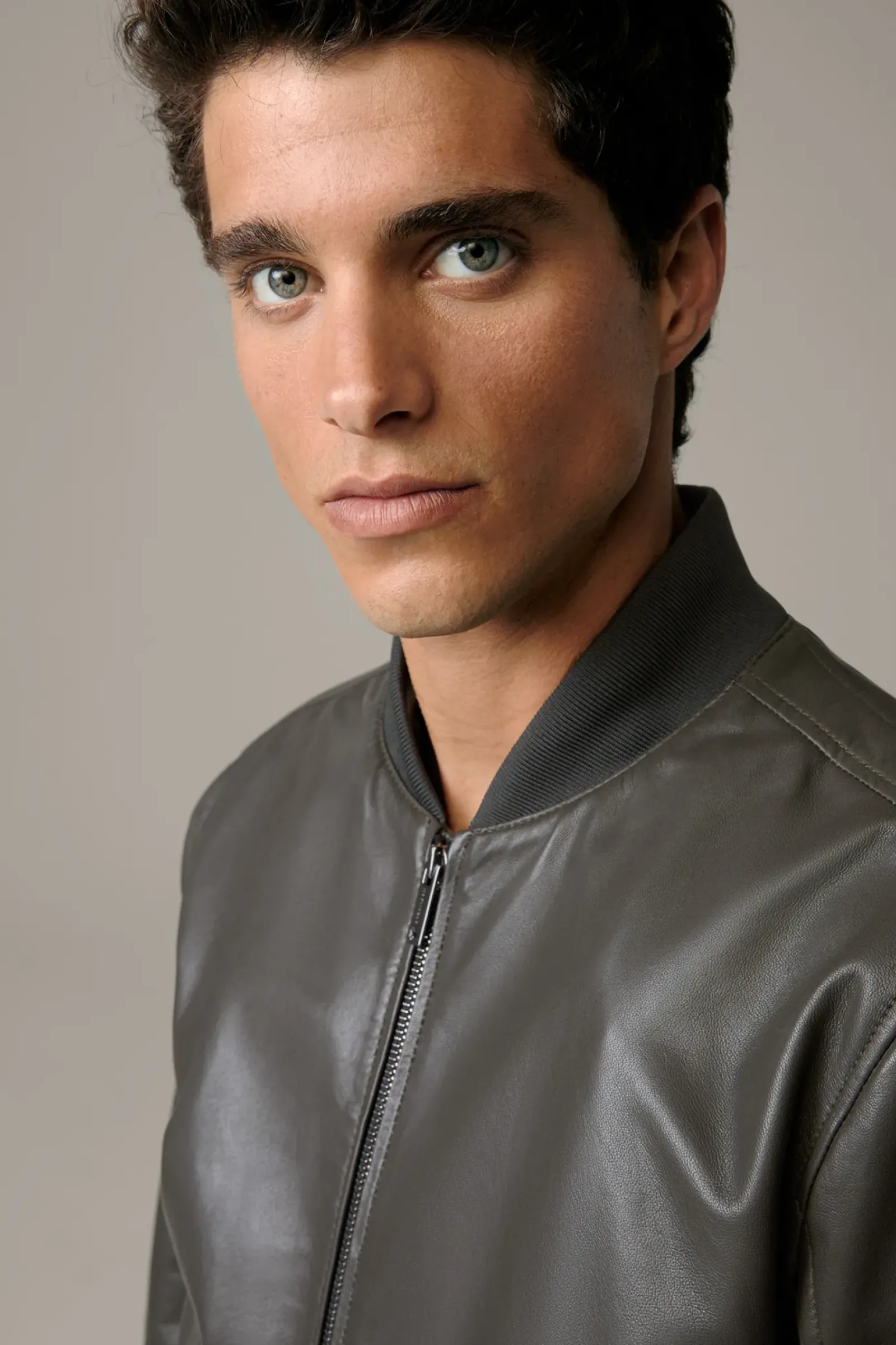 Stehkragen und Bündchen aus Rippstrick verleihen der Lederjacke Meltvin College-Look-Vibes. Aus reinem Lammnappa mit glattem Innenfutter.
