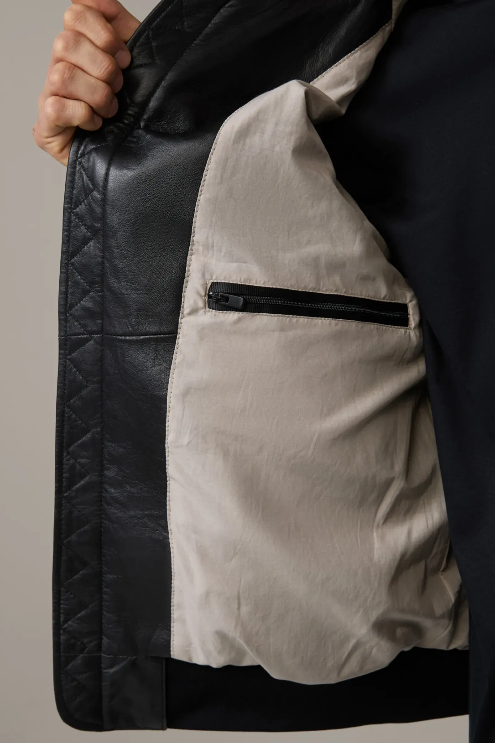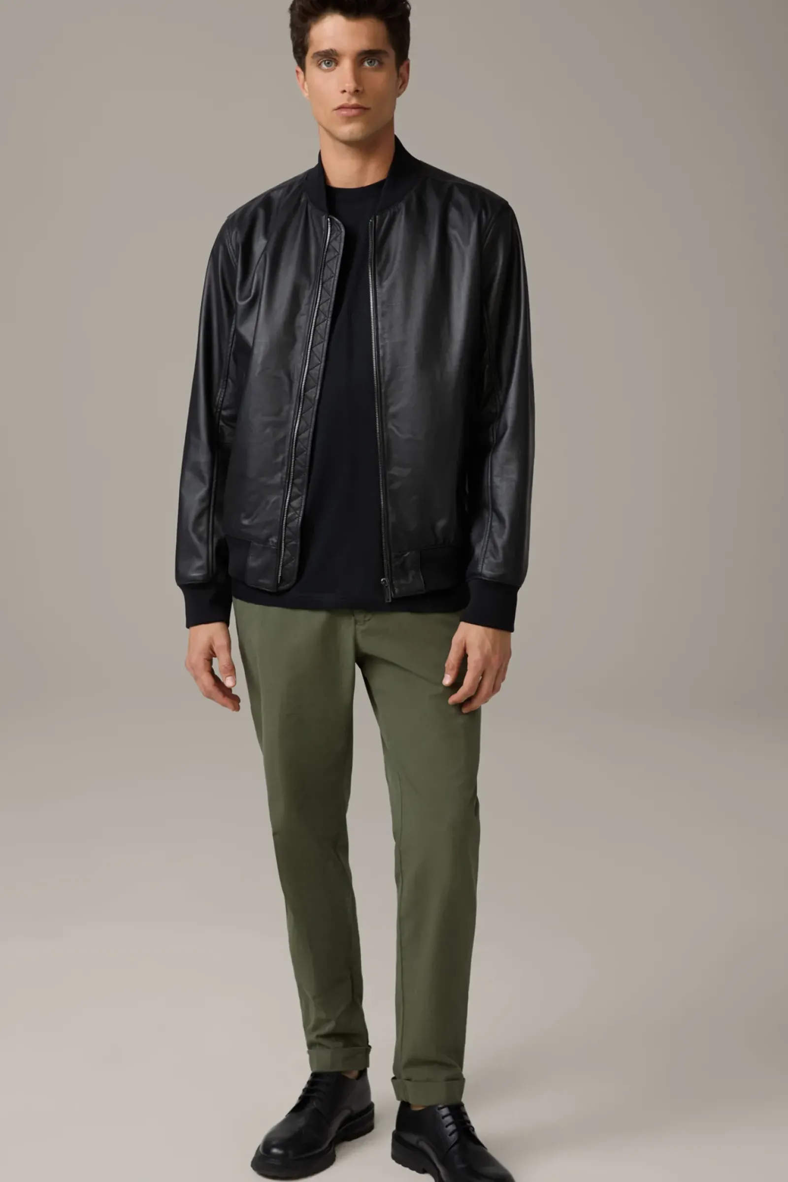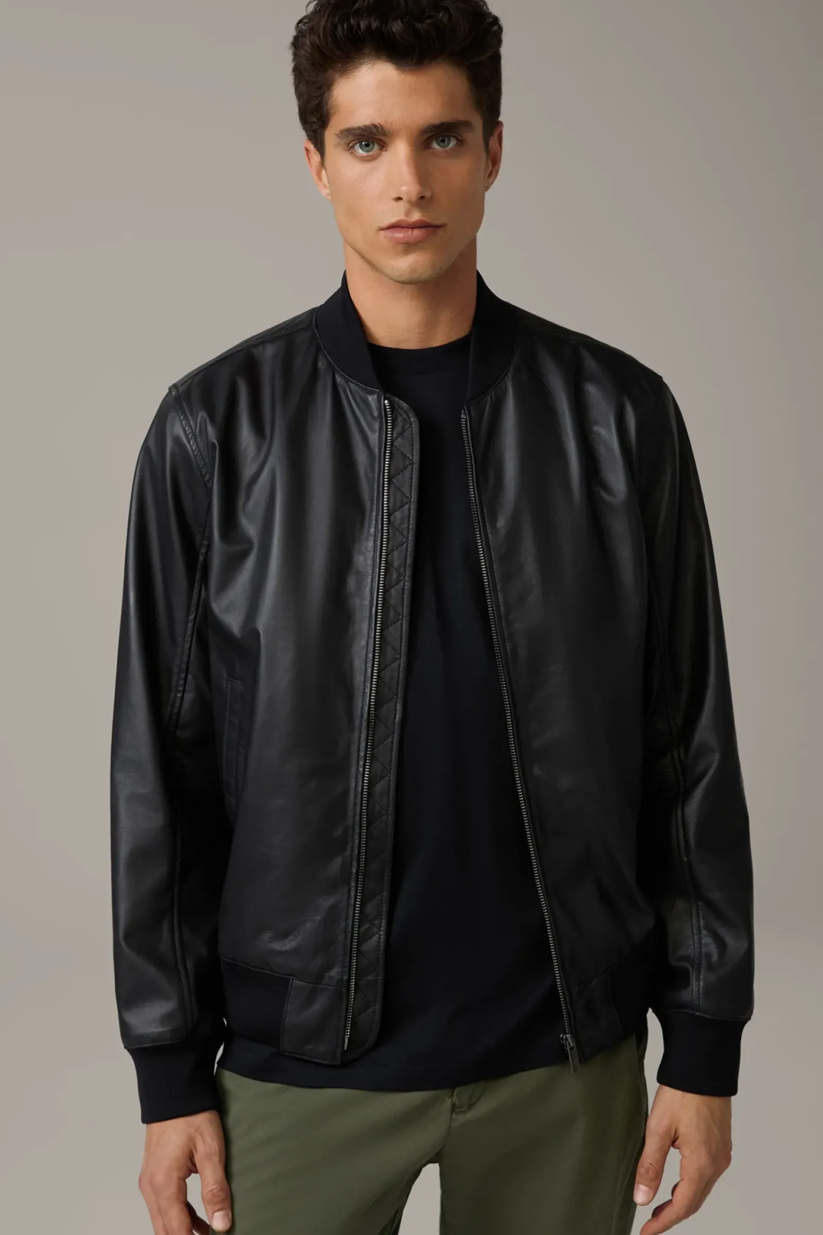 Stehkragen und Bündchen aus Rippstrick verleihen der Lederjacke Meltvin College-Look-Vibes. Aus reinem Lammnappa mit glattem Innenfutter.