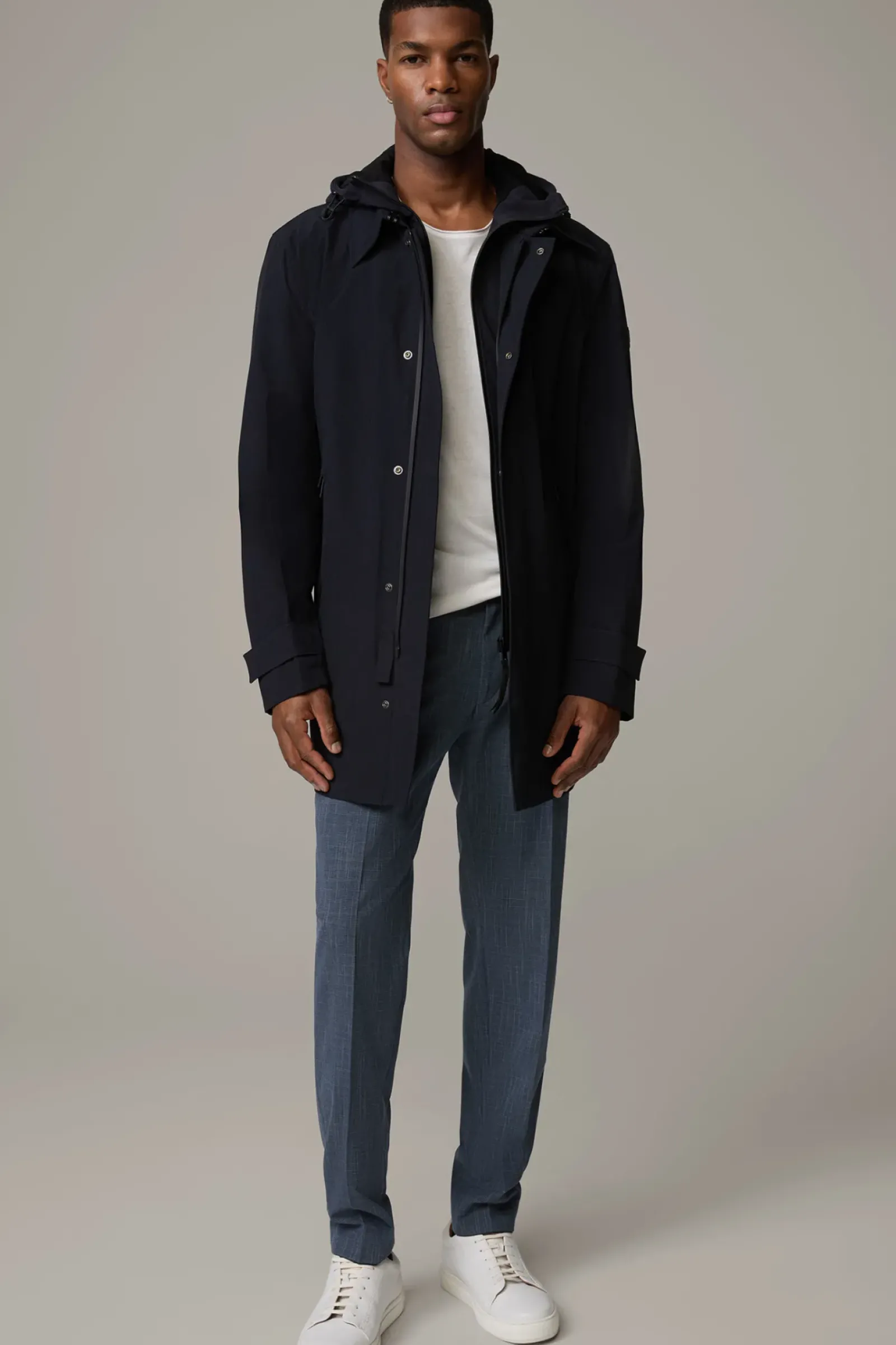 Im Duo-Look überzeugt der Flex Cross Kurzmantel Finchley mit herauszipbarem Inlay. Die Sweat-Kapuze punktet als lässiges Detail, während getapte Nähte und wasserabweisende Eigenschaften ein Performance-Upgrade verleihen.