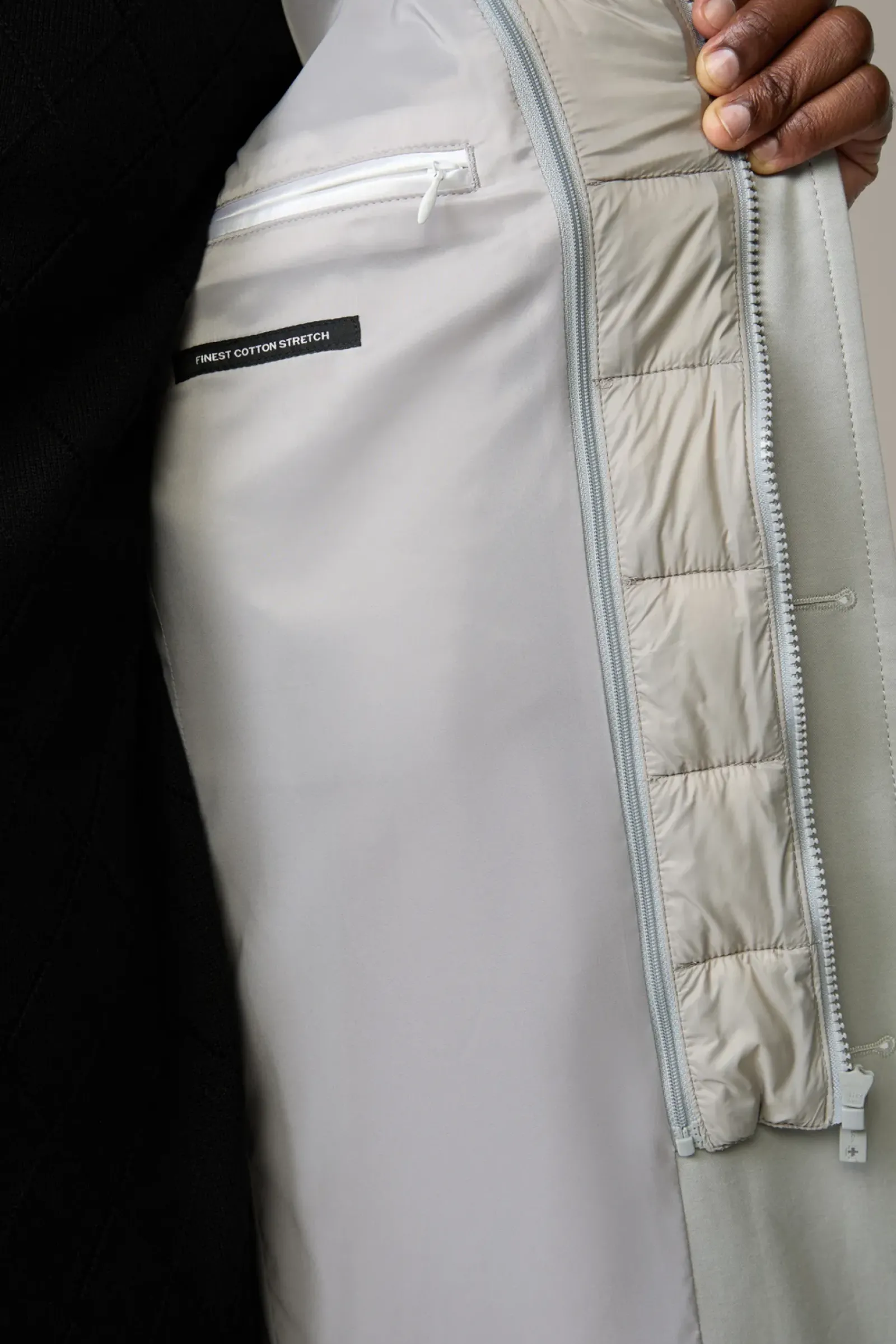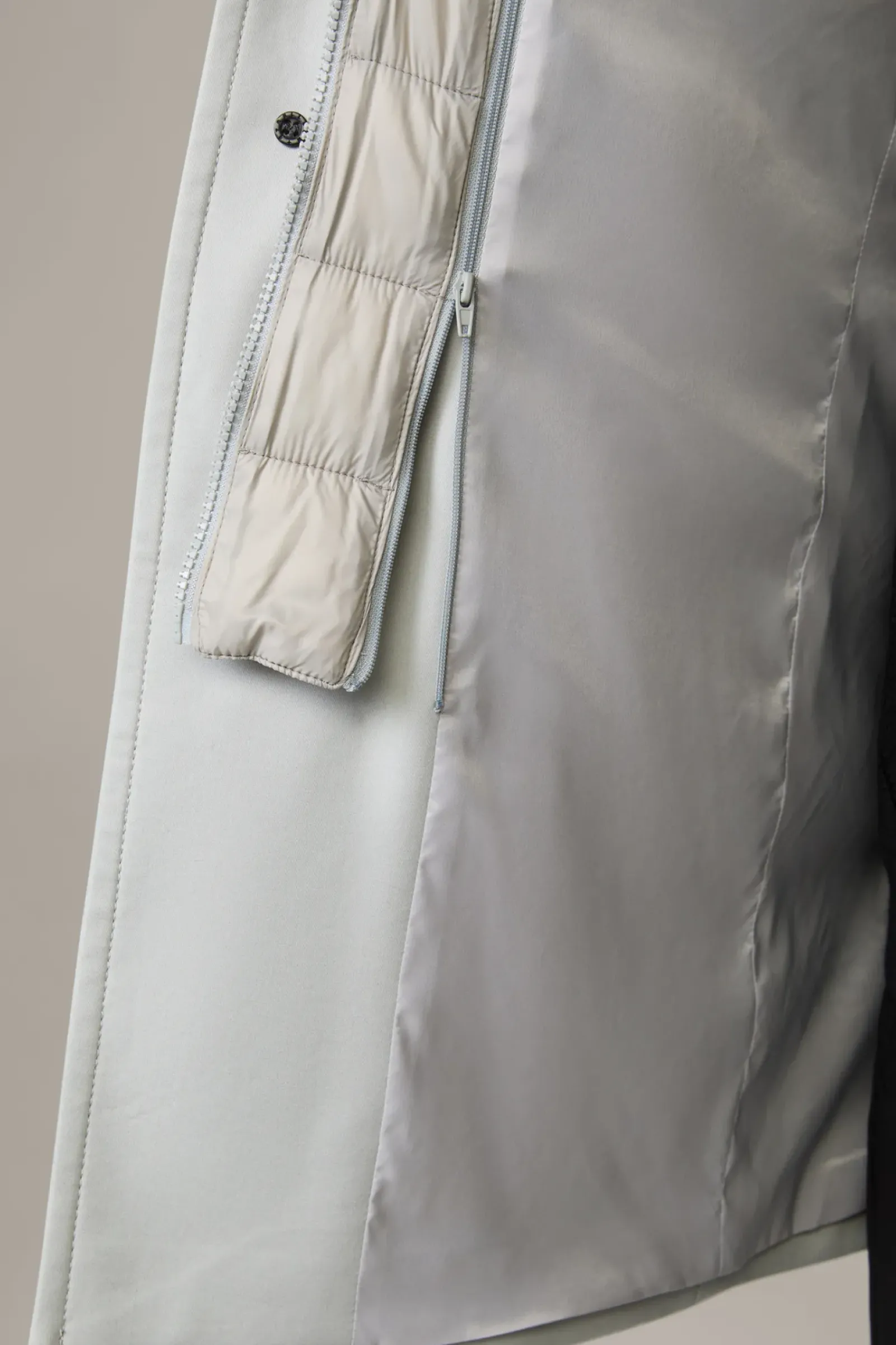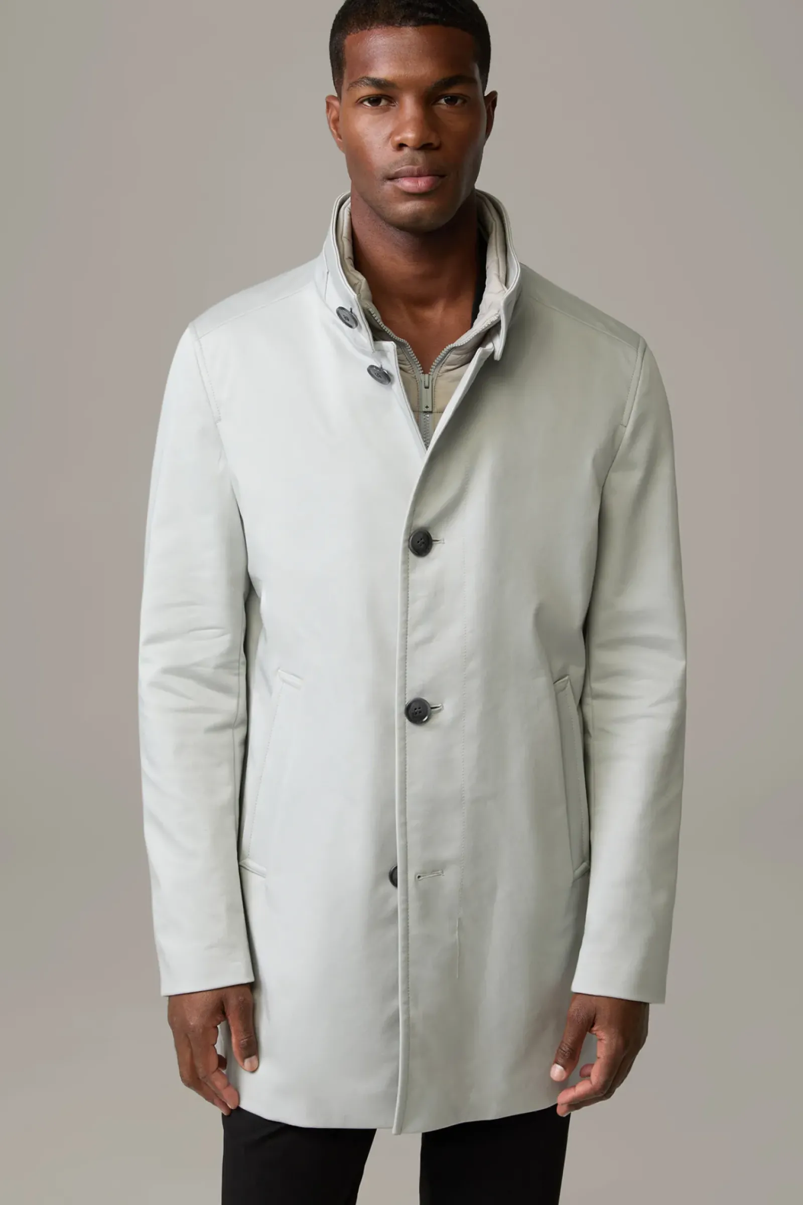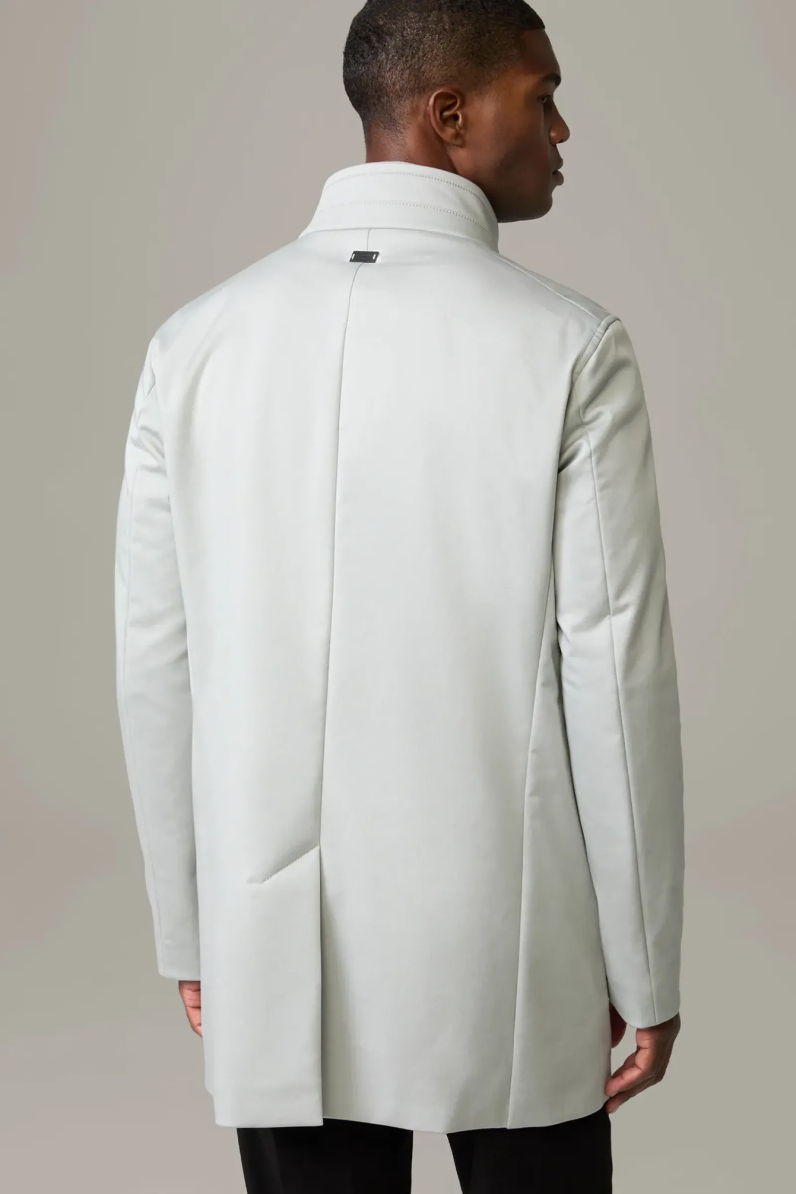 Begeistert als moderner Einreiher mit Stehkragen und abzippbarem Stepp-Inlay. Perforiertes Teilfutter und Bewegungsschlitz sorgen für Komfort.