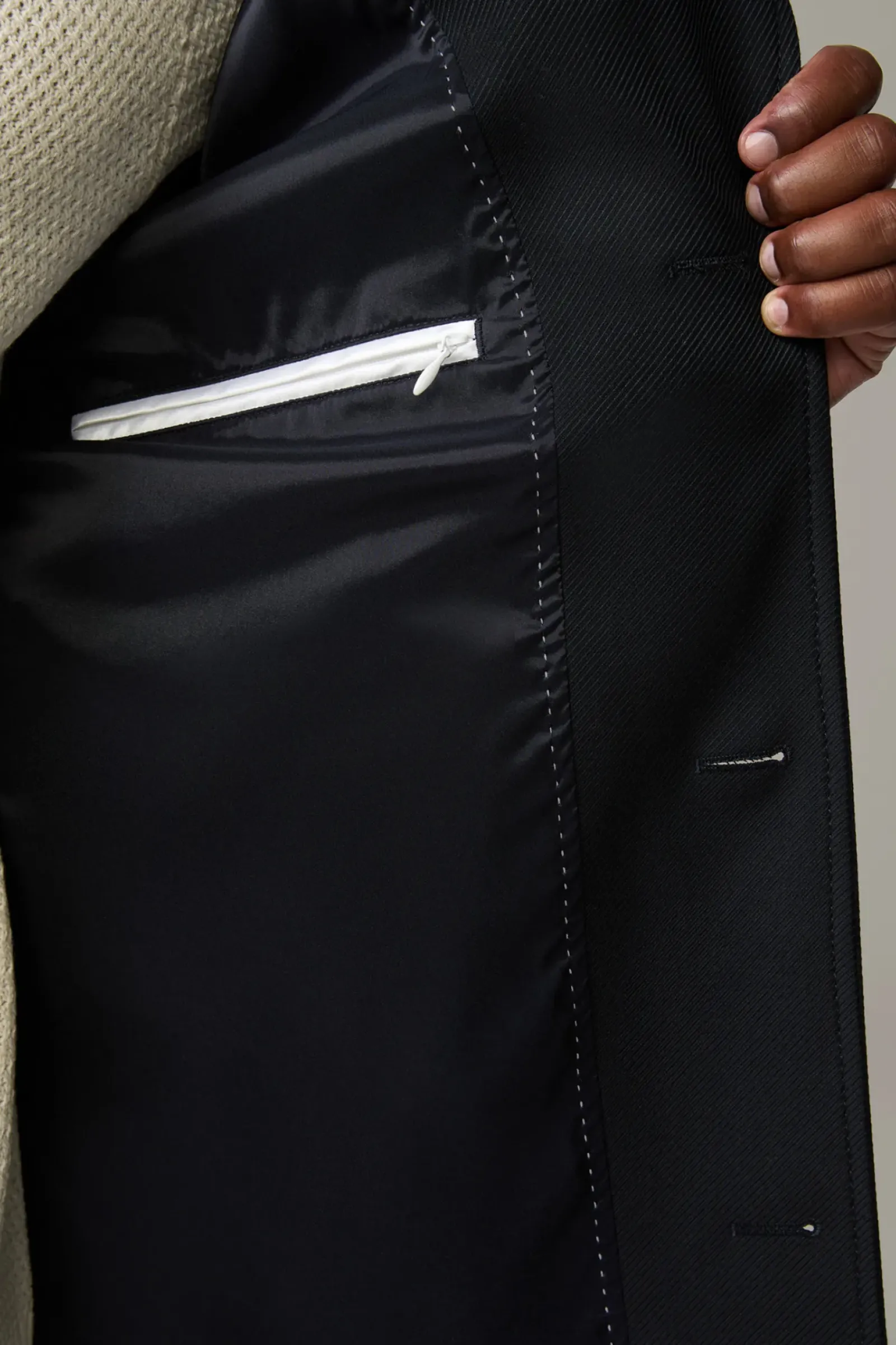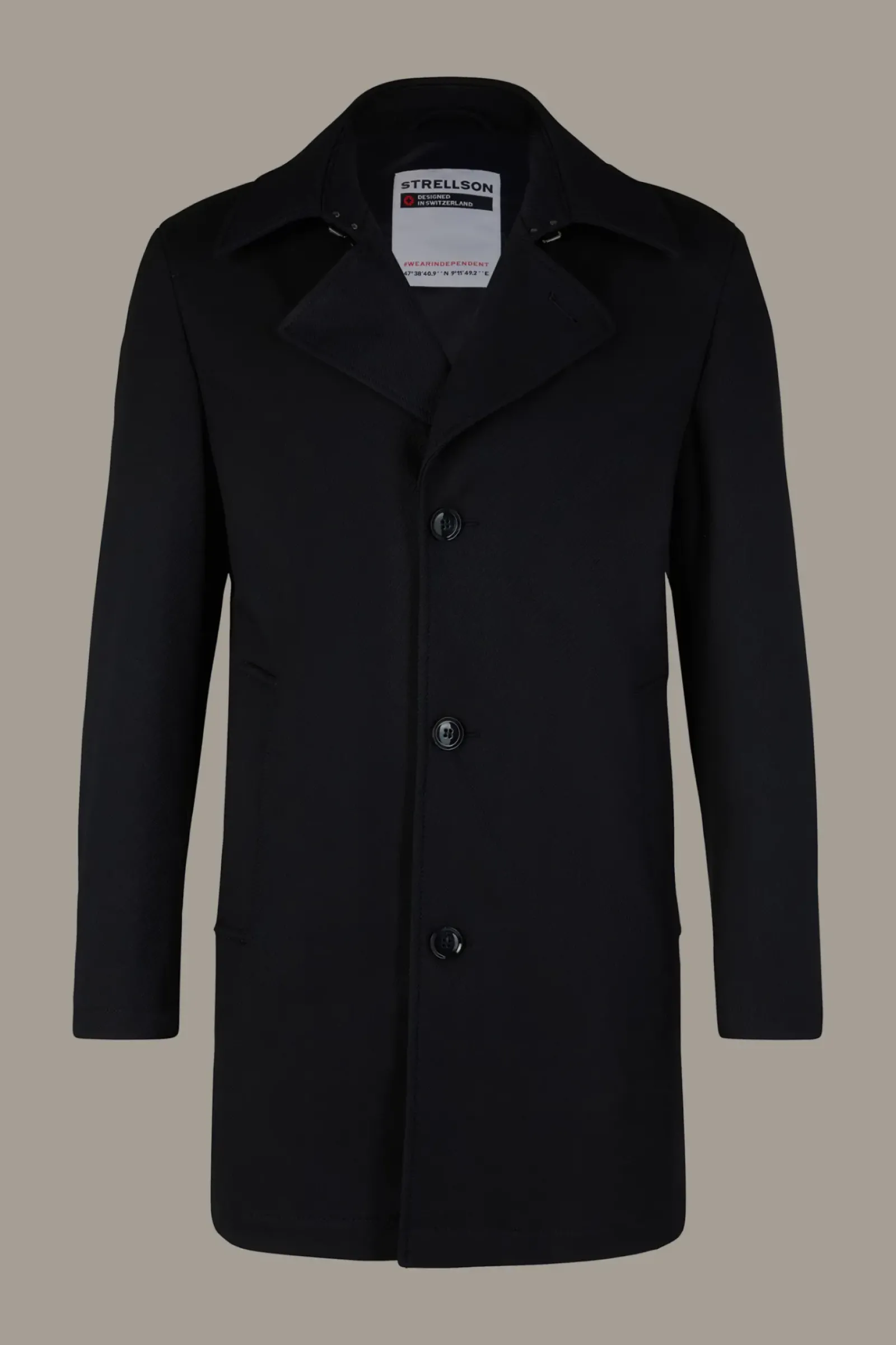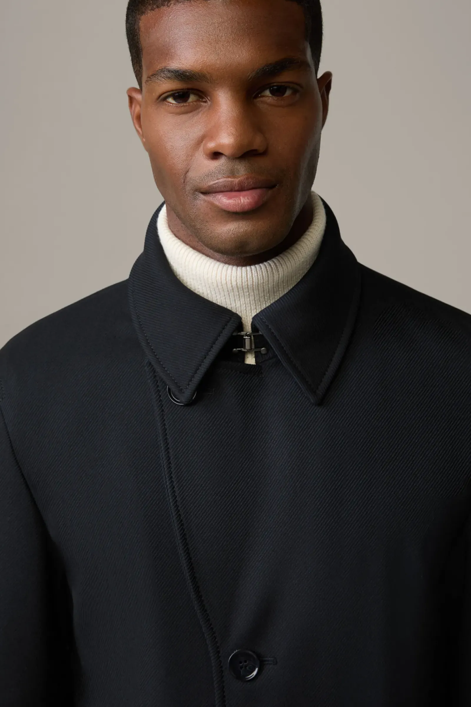 Allrounder mit Classic Twist: der Kurzmantel Adem aus technischer Viskose im Struktur-Design mit Trenchkragen, Leistentaschen und Knopfleiste. Für Komfort sorgt der Bewegungsschlitz.