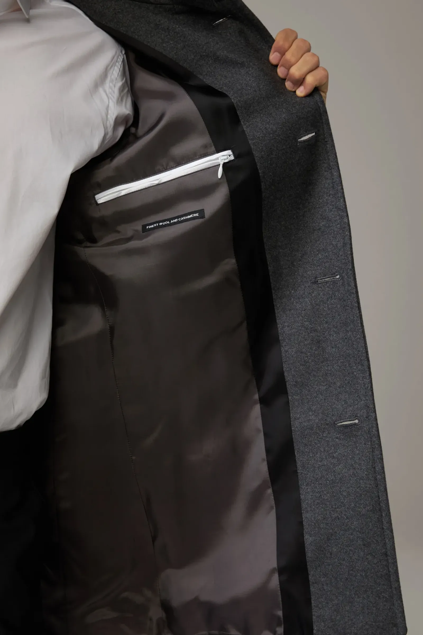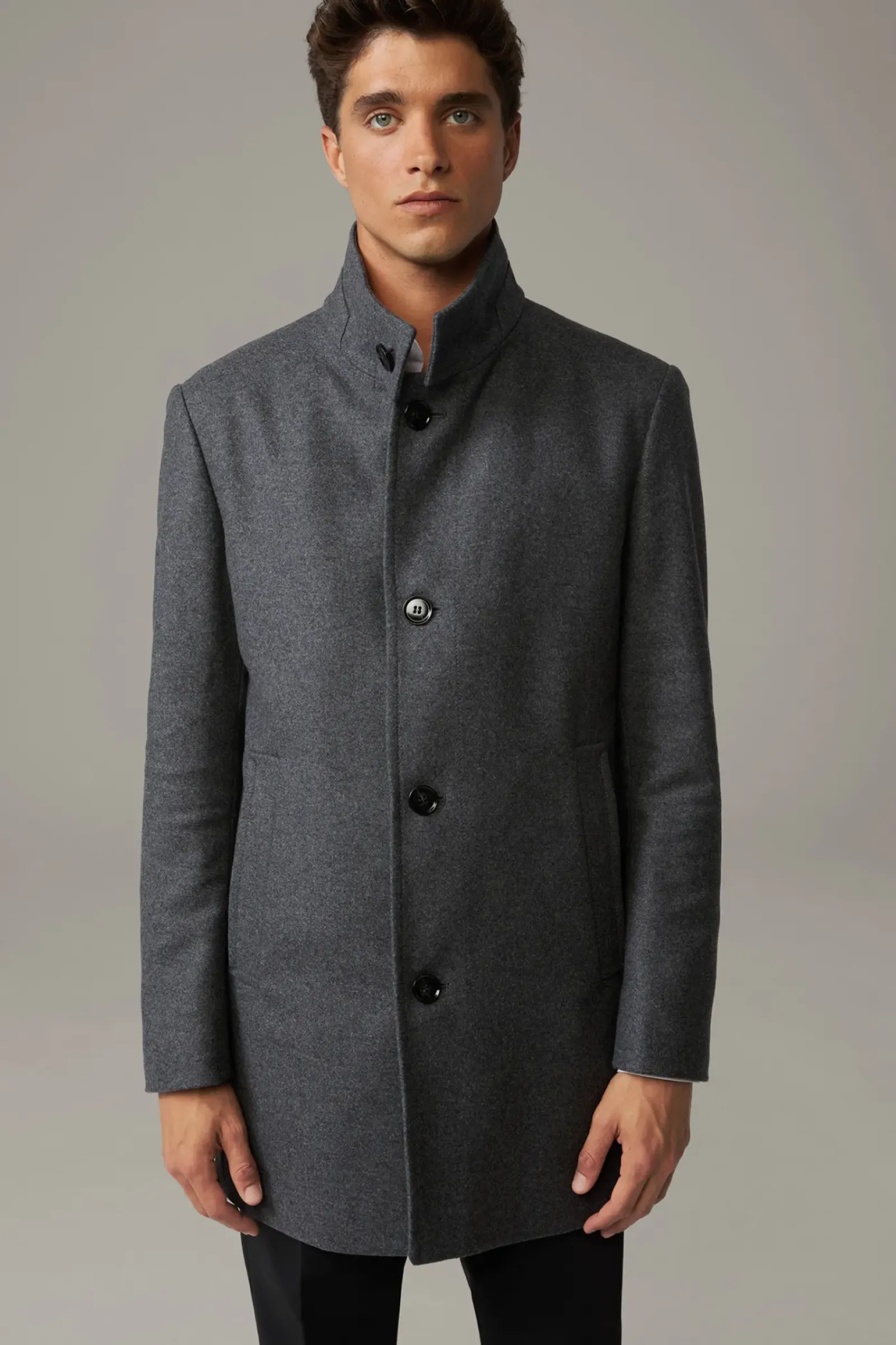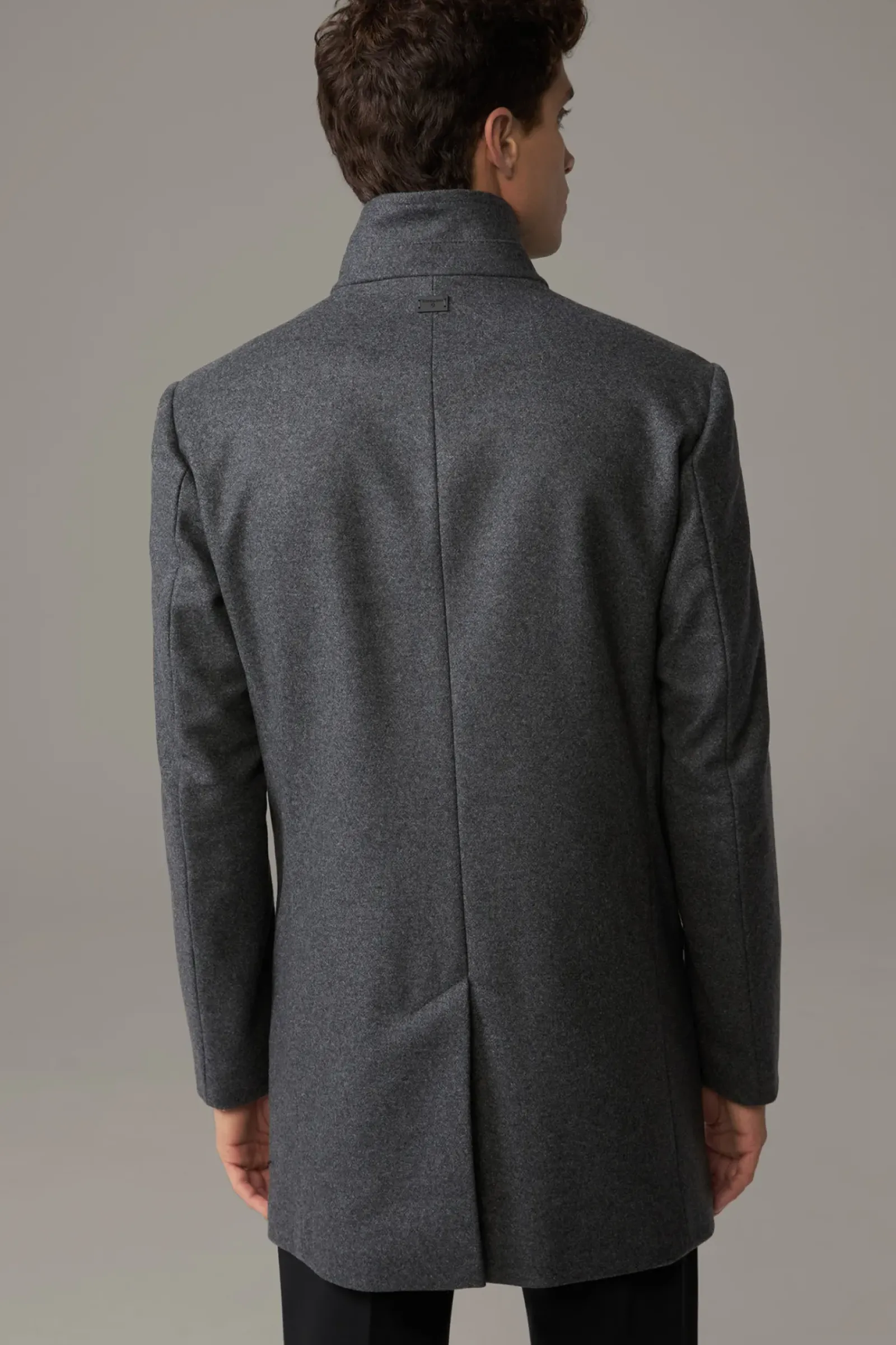 Präsentiert sich als klassischer Einreiher: der Mantel Finchley 2.0 im Wollmix mit Cashmere-Anteil. Mit knöpfbarem Stehkragen, Leistentaschen und fließendem Futter.
