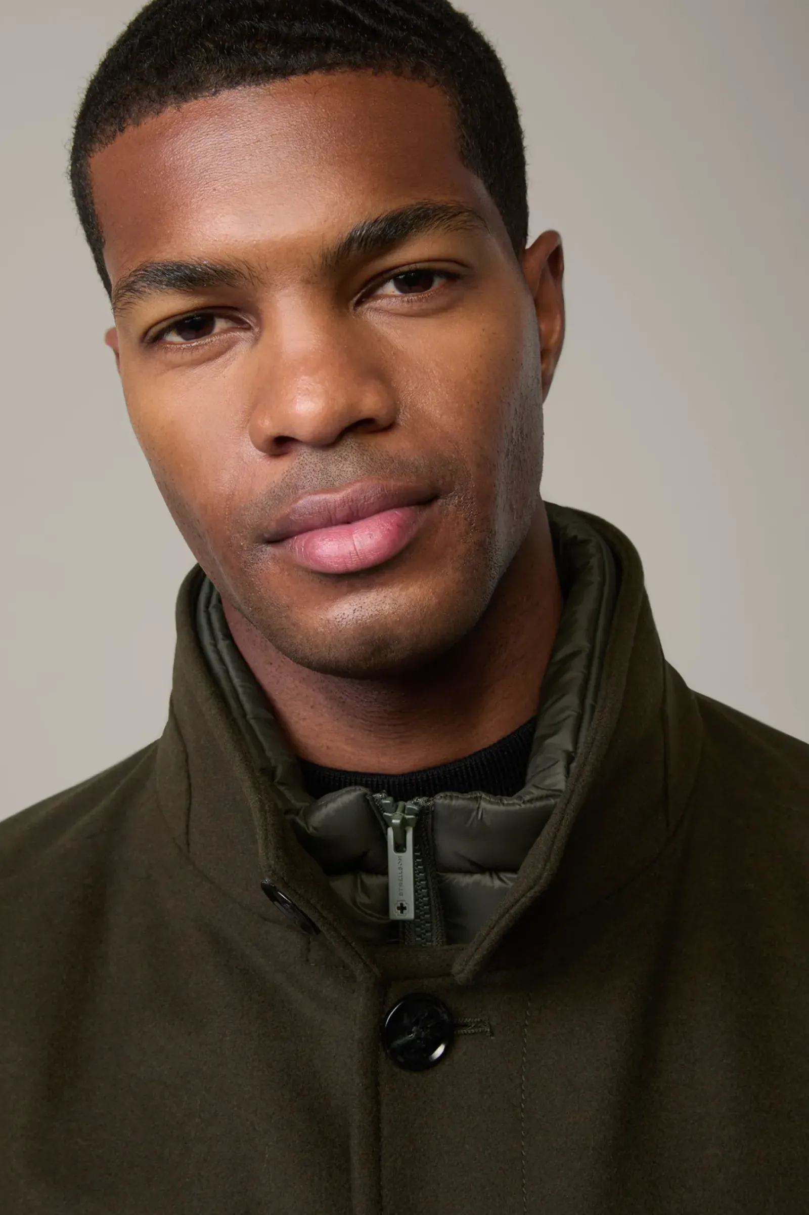 Klassischer Einreiher mit Stehkragen und abzippbarem Stepp-Inlay: der Mantel Finlay im Wollmix mit Cashmere-Anteil. Teilgefüttert.