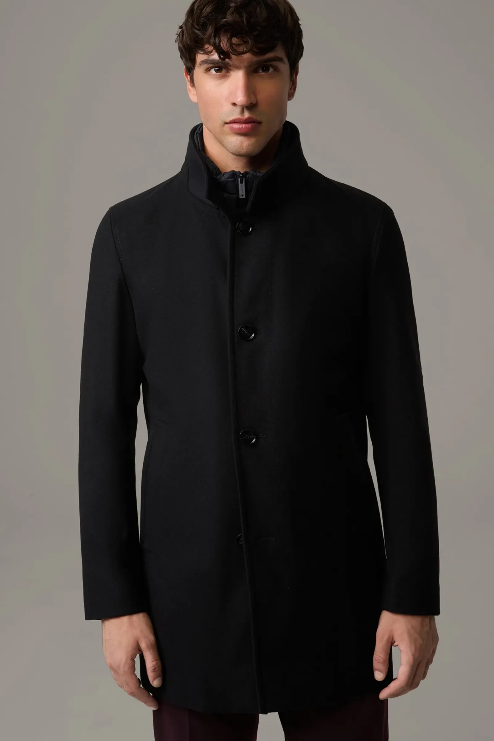 Klassischer Einreiher mit Stehkragen und abzippbarem Stepp-Inlay: der Mantel Finlay im Wollmix mit Cashmere-Anteil. Teilgefüttert.
