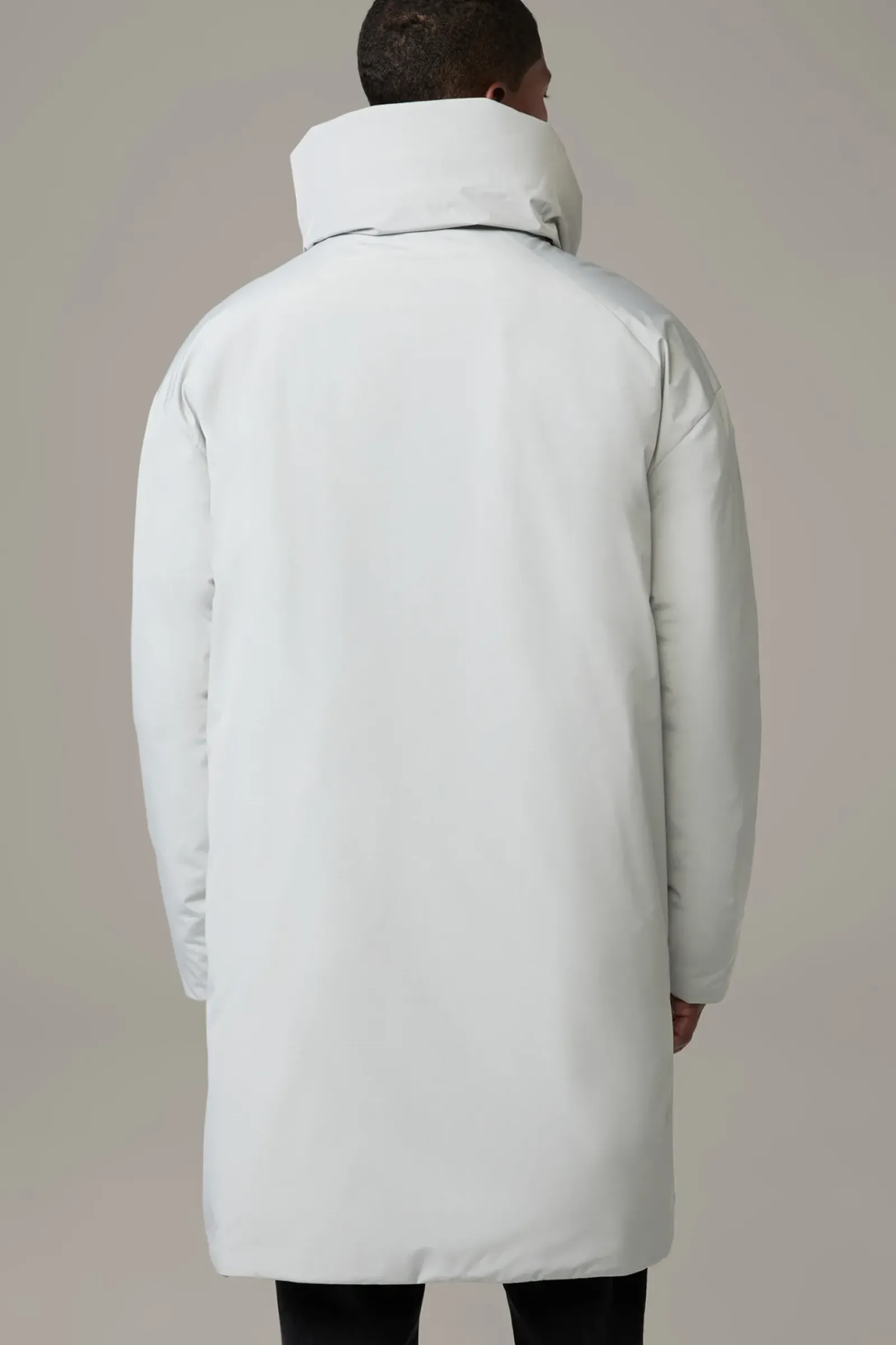 Funktionales Key Piece: der wattierte Parka mit Stehkragen in Tech-Qualität mit wasserabweisenden und winddichten Eigenschaften. Mit Zwei-Wege-Zipper und Logo-Druckknöpfen.