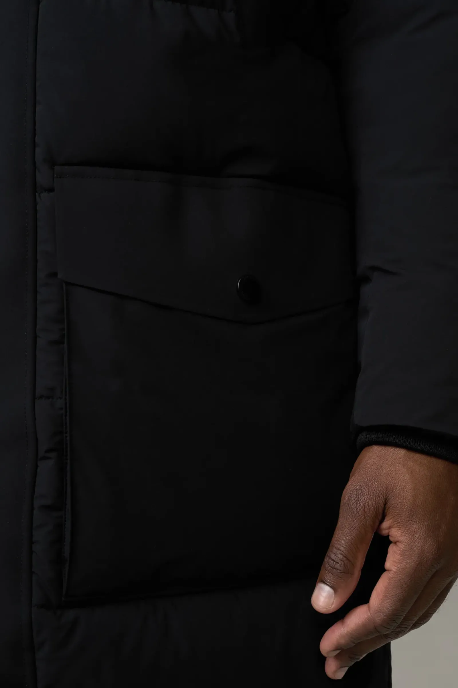 Performancestarkes Piece: der gesteppte Parka S.C. Crasher Fused mit fixiertem Windbreaker Inlay, getaptem Zipper und funktionalen Taschen-Elementen. Aus atmungsaktiver, wind- und wasserabweisender Tech-Qualität mit komfortabler Isocloud_500® Wattierung.