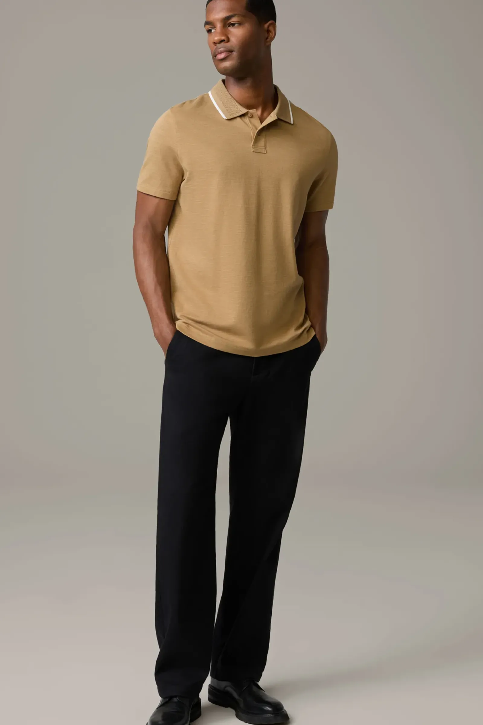 Streifen-Details am Polokragen, Logo-Knöpfe und Seitenschlitze am Saum zeichnen das Design aus: Poloshirt Riko.