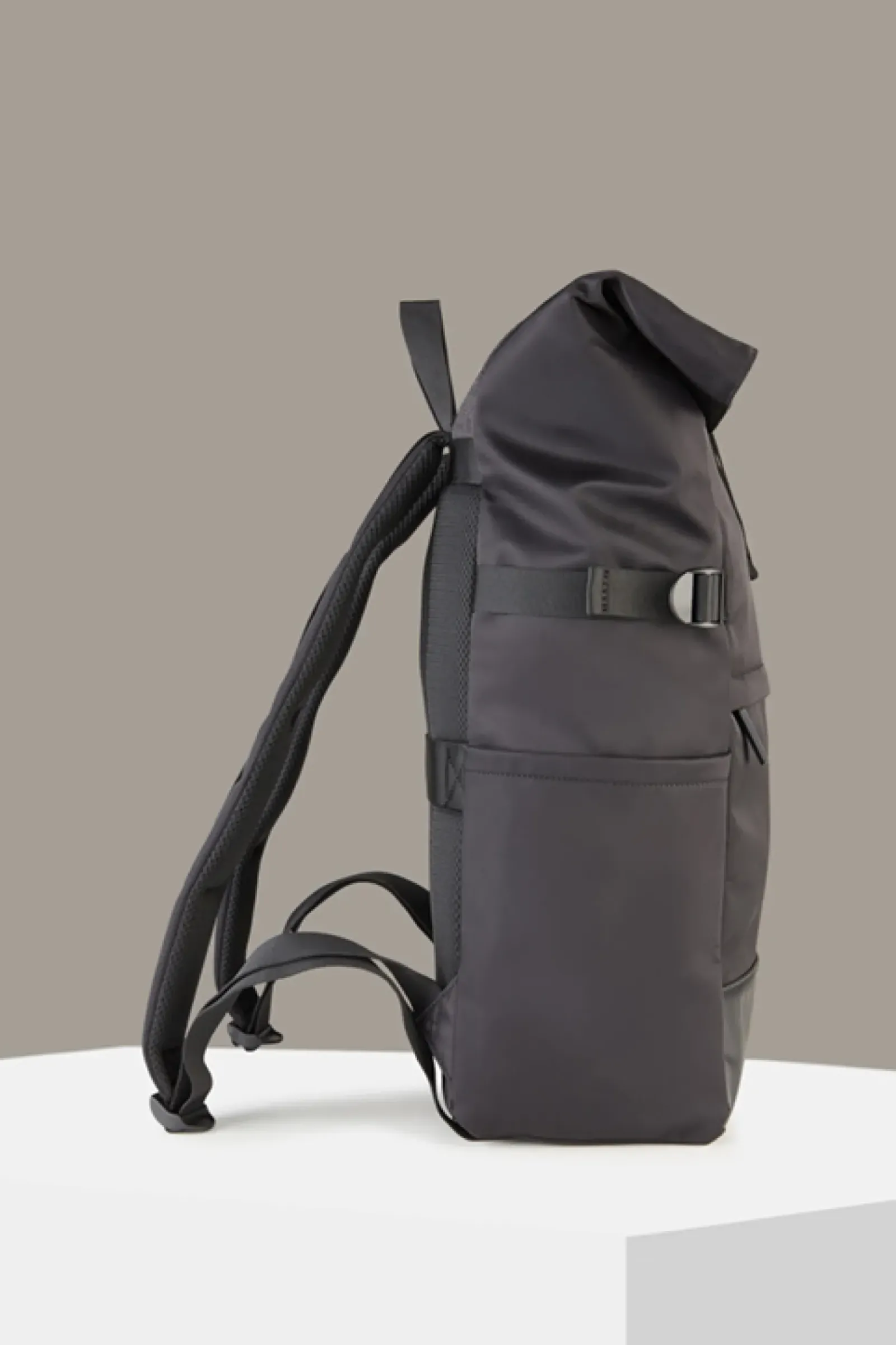 Performancestarkes Piece: der Rucksack Eddie aus der Brick Lane Kollektion im Fold-Over-Design mit diversen Taschen und Fächern, gepolsterten Schulterriemen sowie einer Mesh-Rückenpartie mit Trolley Schlaufe.