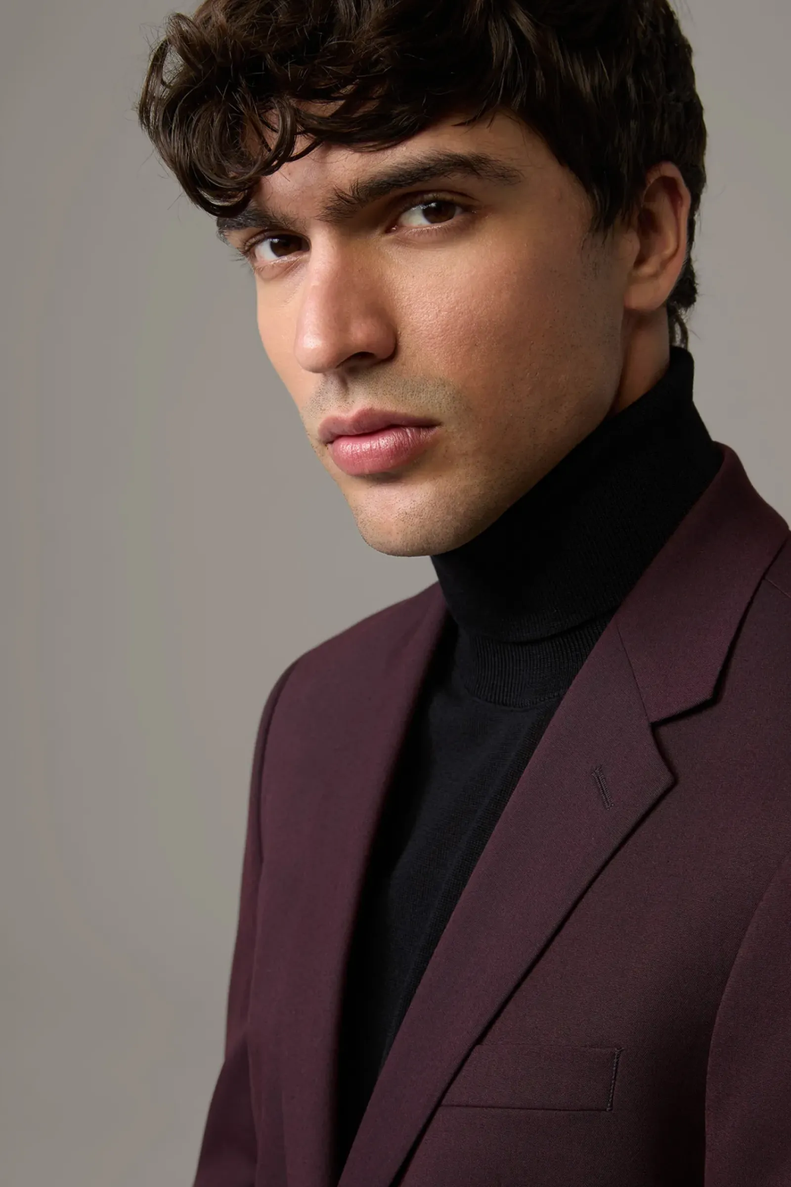 Das Sakko Aidan überzeugt mit klassischen Details wie dem Reverskragen, paspelierten Pattentaschen und Kissing-Buttons an den Ärmelabschlüssen. Aus Woll Stretch.
