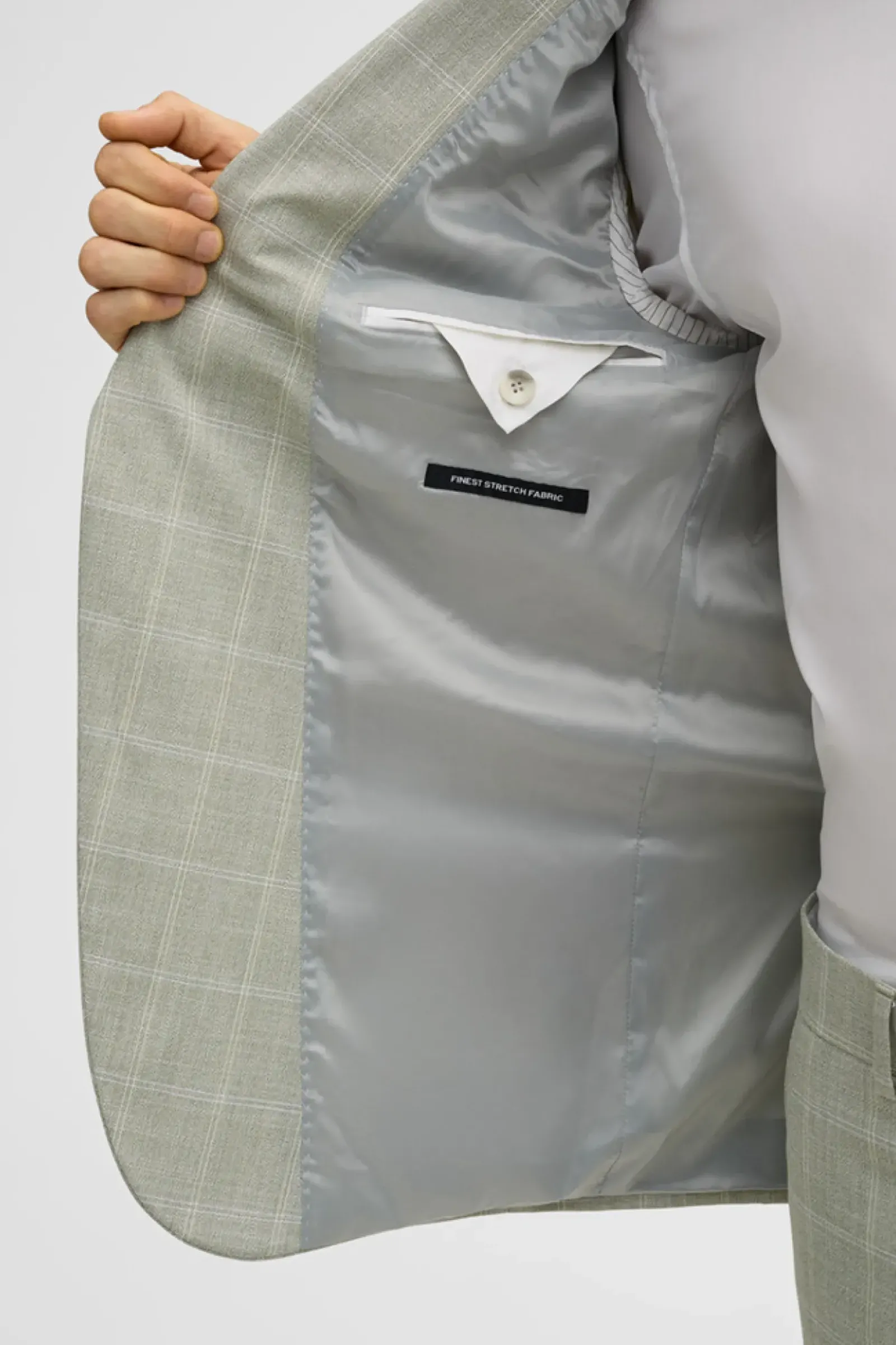 Die stretchige Tech-Wool-Verarbeitung und ein fließendes Futter schenken dem Sakko Aidan Komfort. Paspelierte Pattentaschen, Zierärmelschlitze und ein klassisches Revers ergänzen den Look.