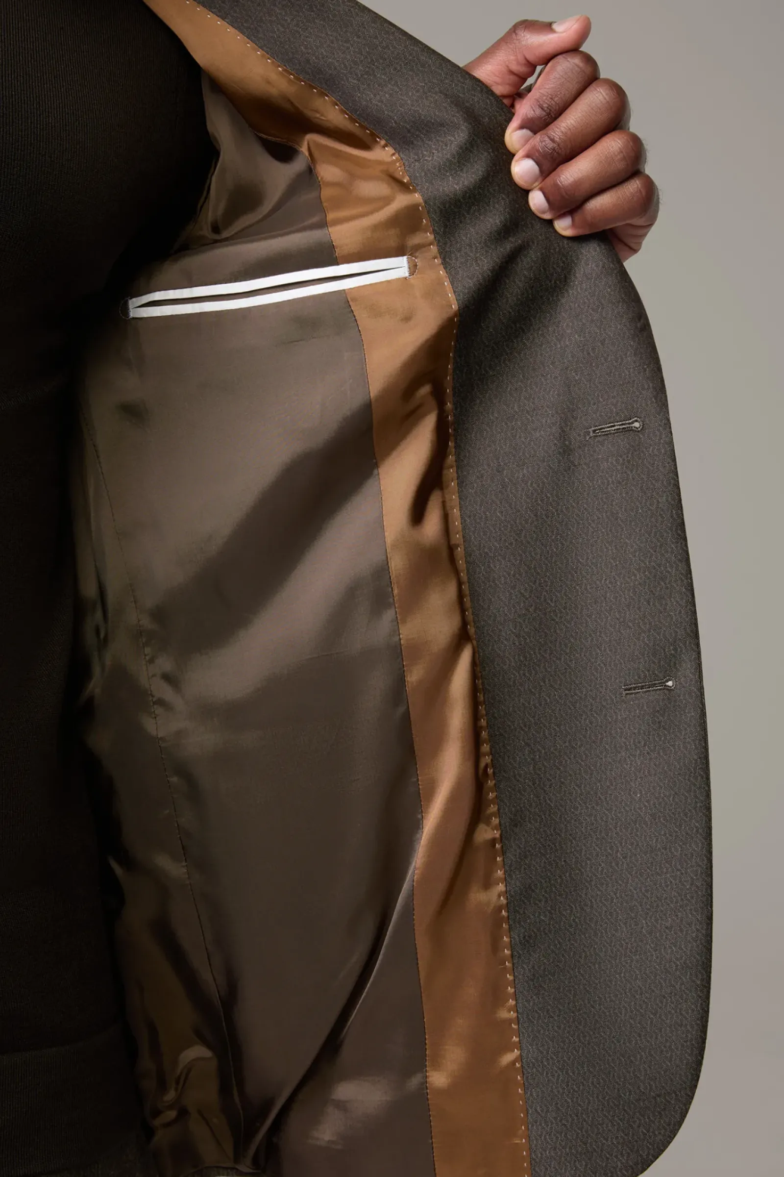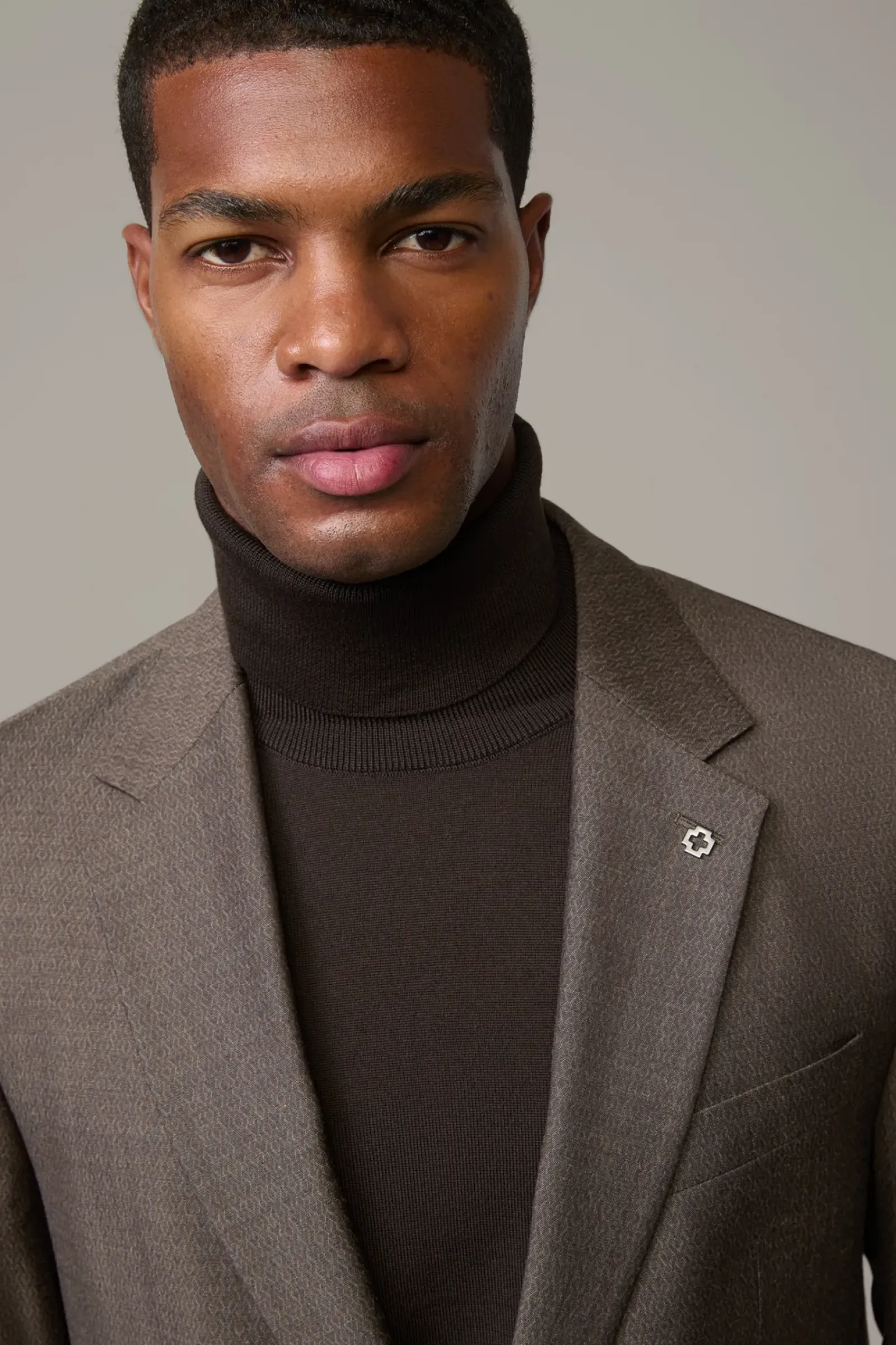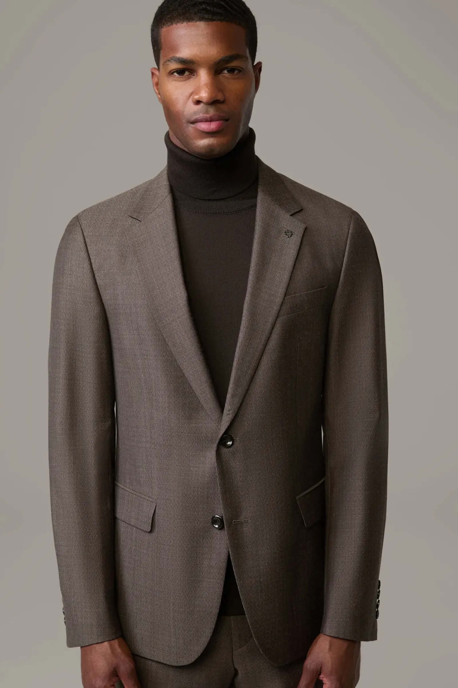 Präsentiert sich als Perfect Match zur Anzughose Melwin: das Sakko Alzer im dezenten Muster mit paspelierten Pattentaschen und Logo-Pin am Revers. Weberei Marlane.
