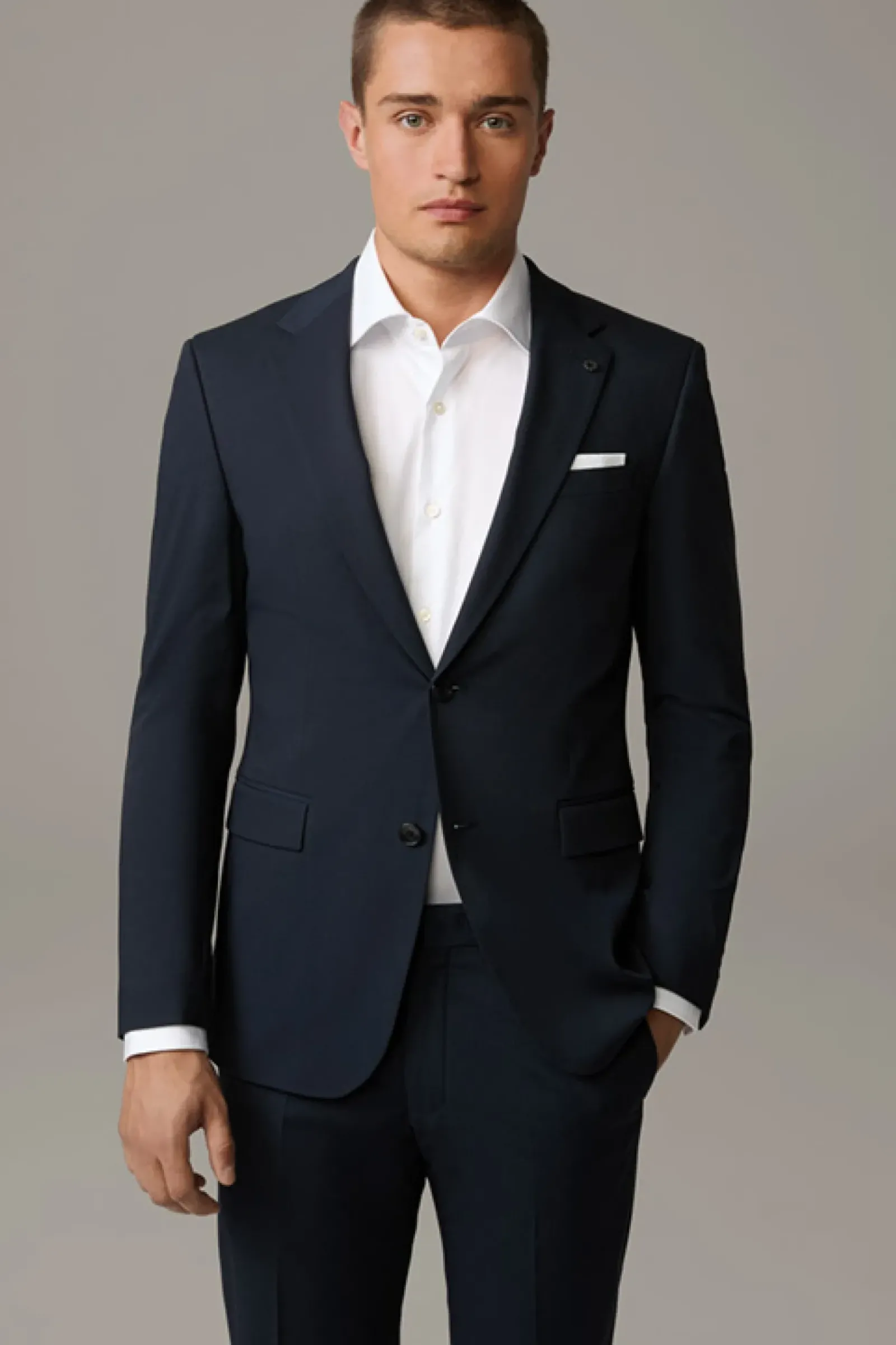Begeistert als Einreiher mit fallendem Revers, paspelierten Pattentaschen und Bewegungsschlitzen. Mit ikonischem Signé-Pin und Innenfutter.