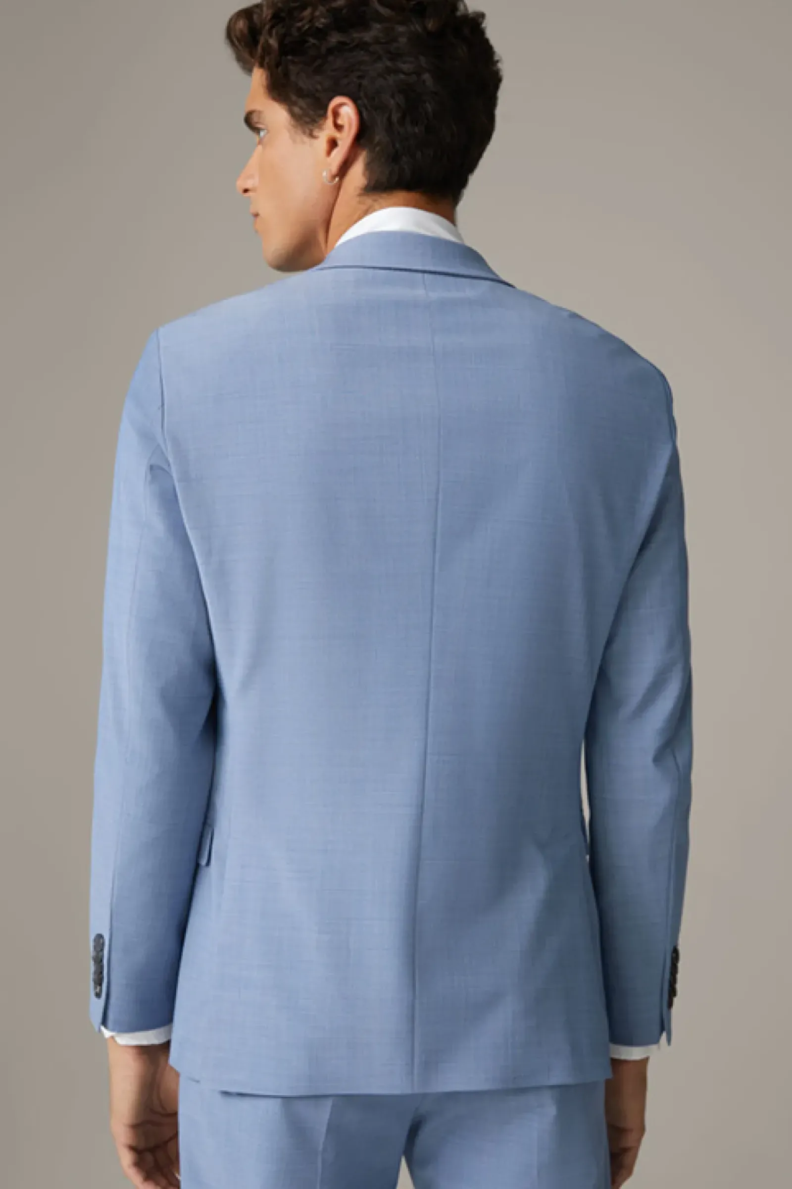 Klassisches Business-Piece: das Sakko Caleb mit Revers, Pattentaschen und Bewegungsschlitzen. Komfortabler Woll-Stretch mit glattem Futter.