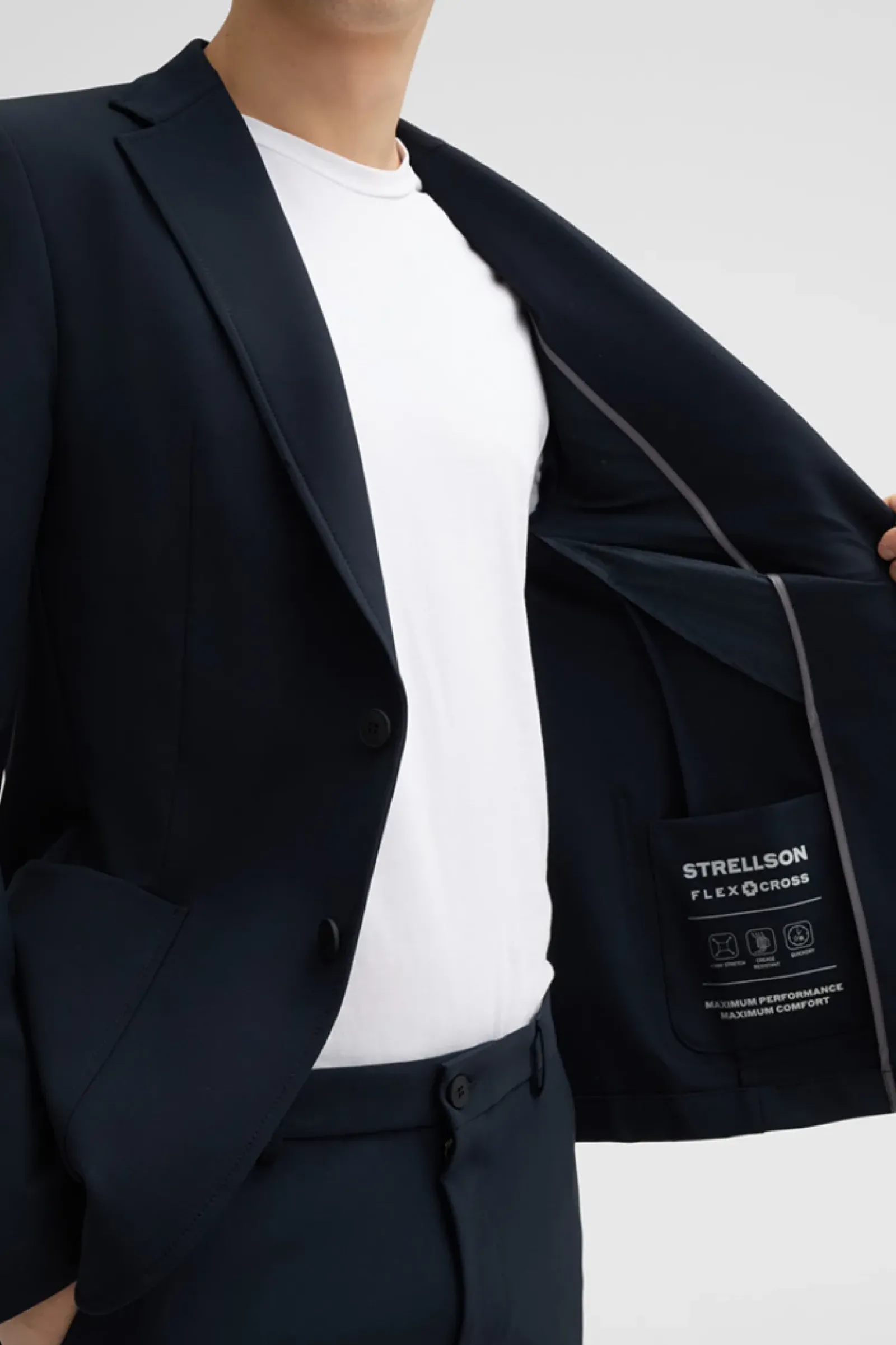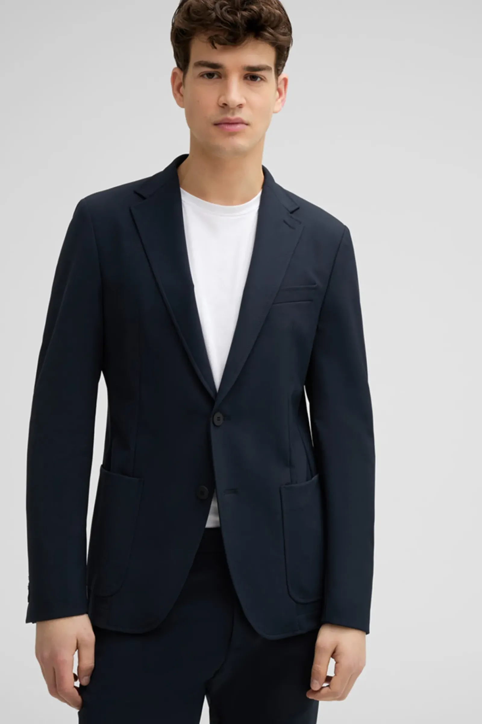 Begeistert in stretchiger Flex Cross-Qualität: das Sakko Acon miz klassischen Details wie Revers und paspelierten Pattentaschen. Knitterfrei und schnelltrocknend.
