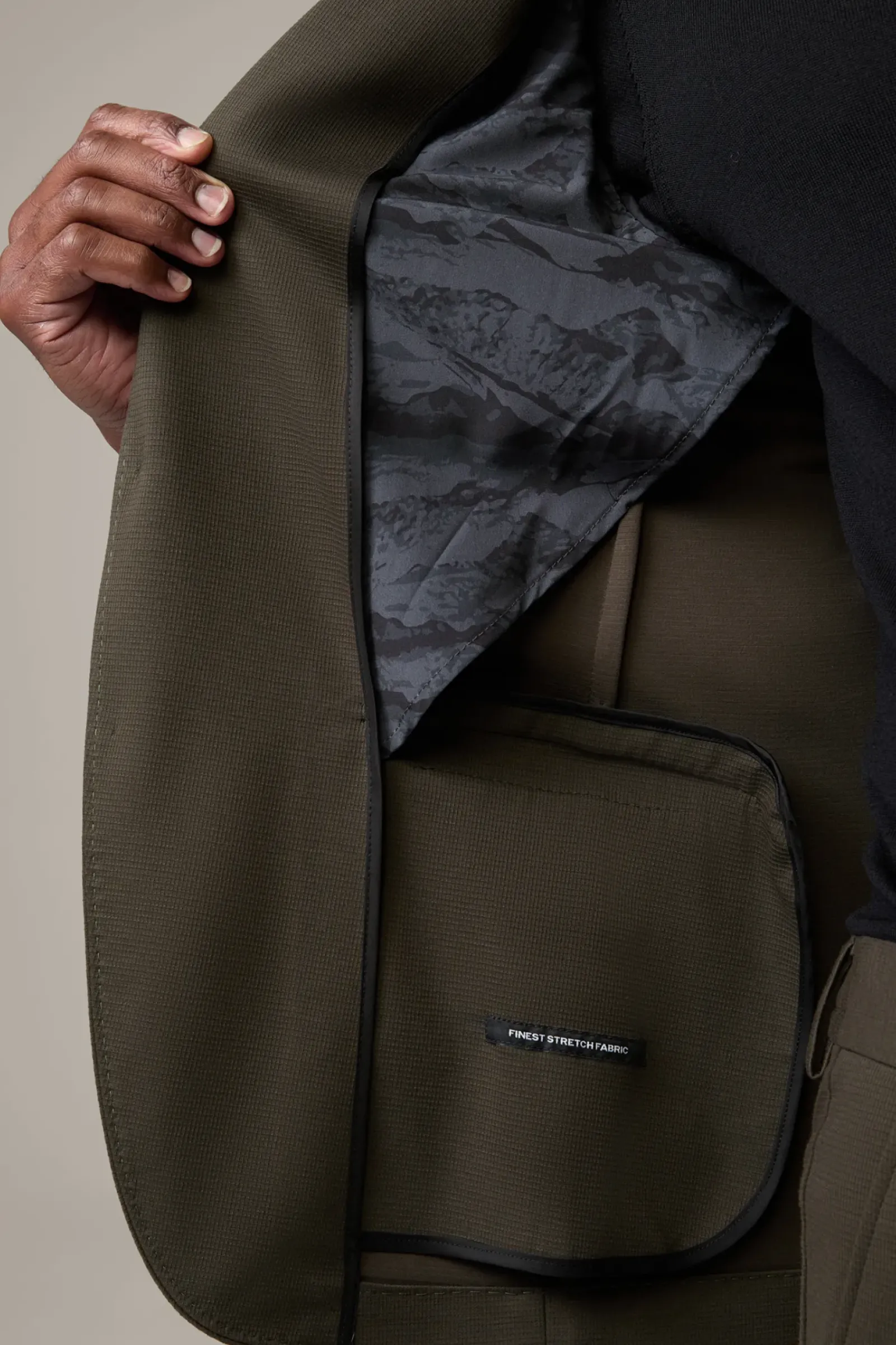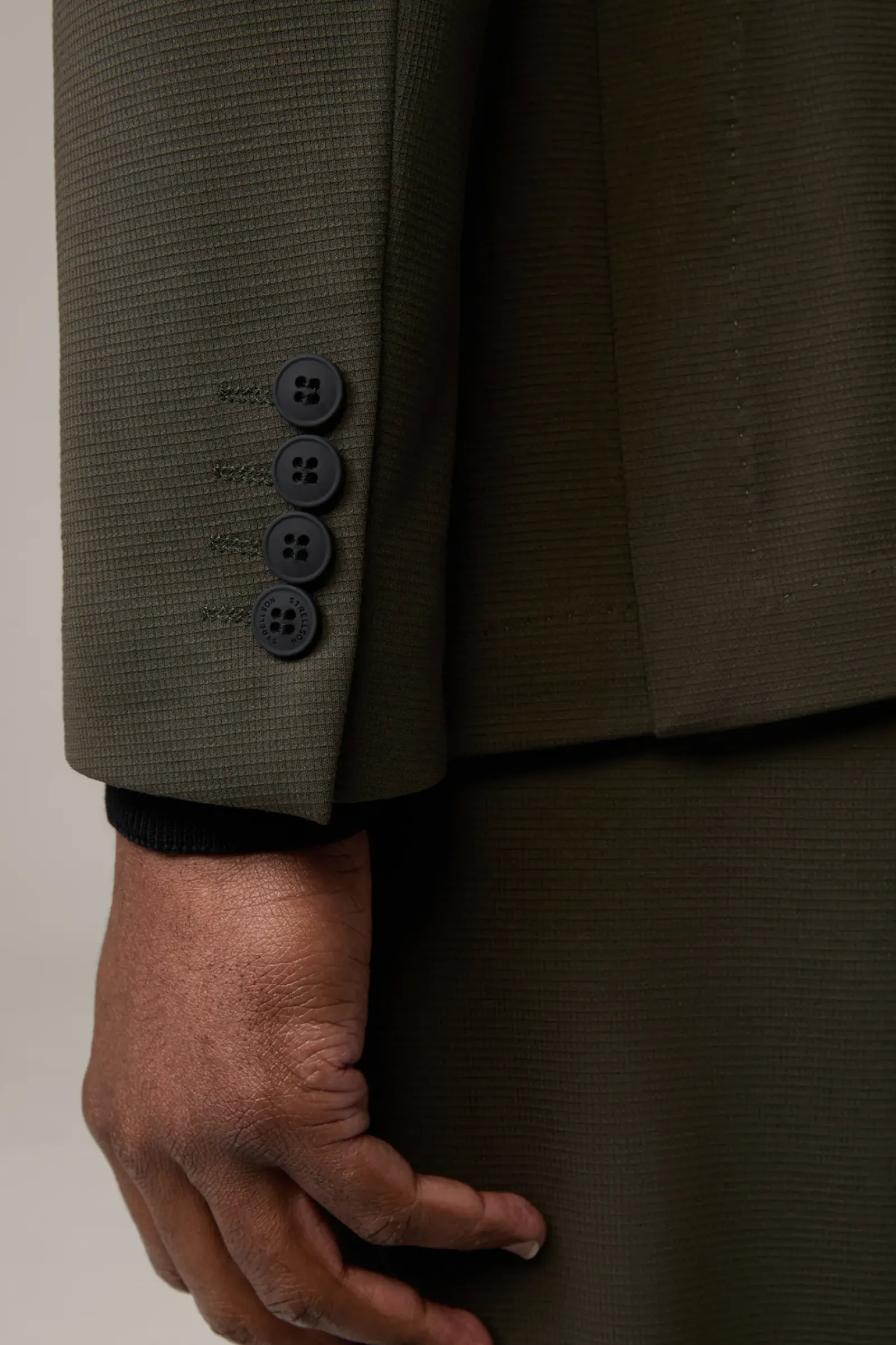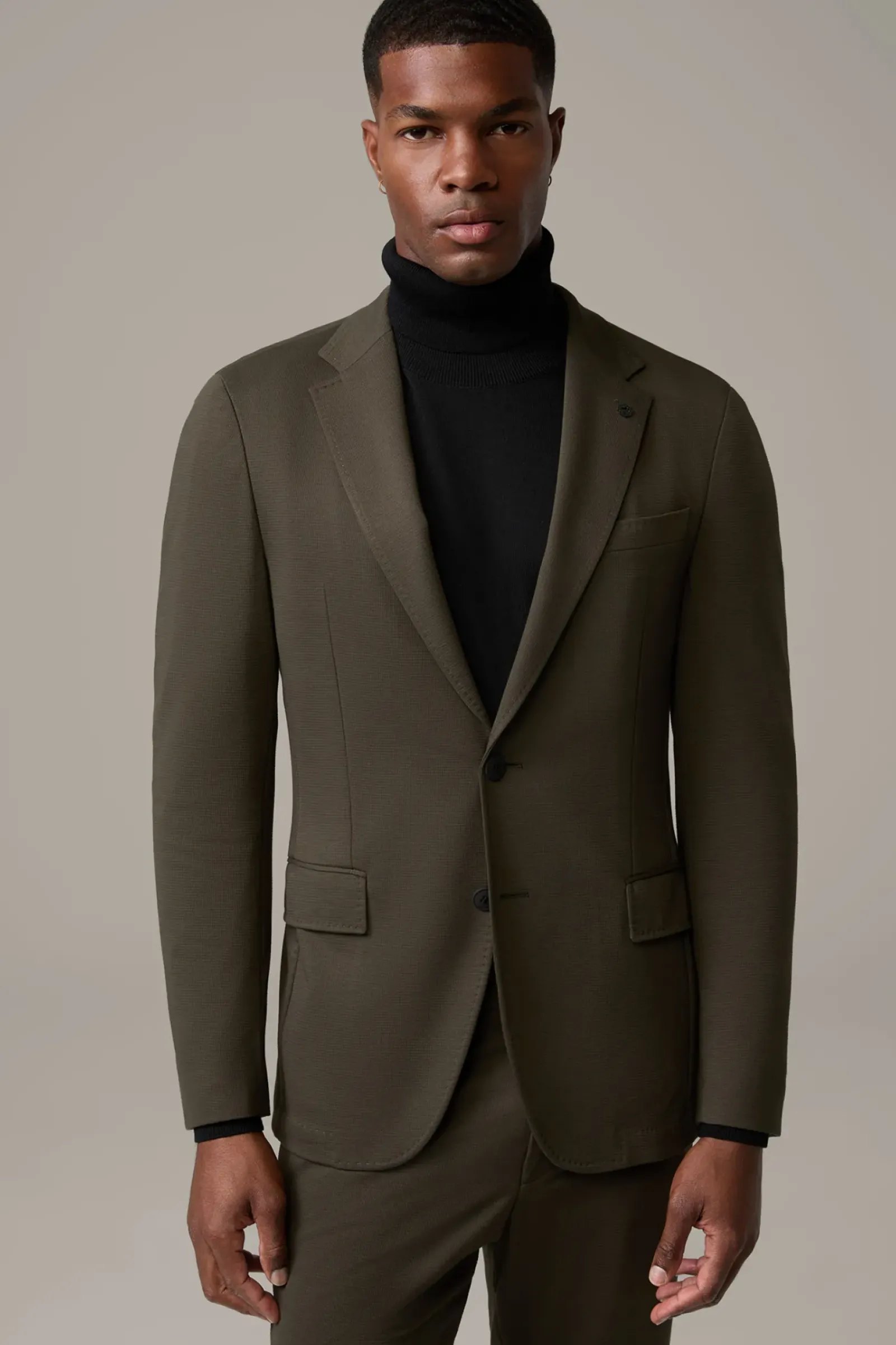 Komfortables Piece: Sakko Acon im strukturierten Ramie-Mix. Ein schmales Revers, paspelierte Pattentaschen sowie Duo-Bewegungsschlitze zeichnen das Item aus.
