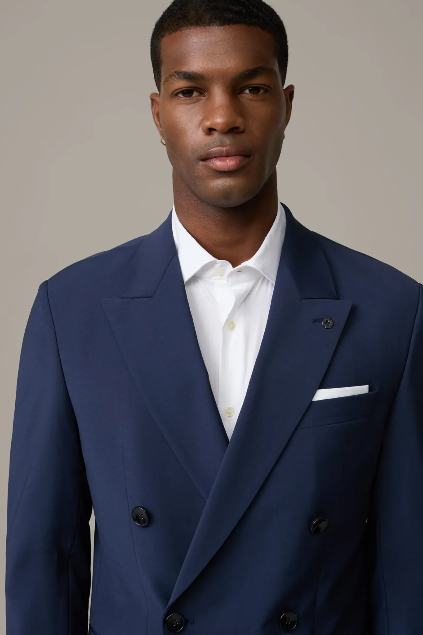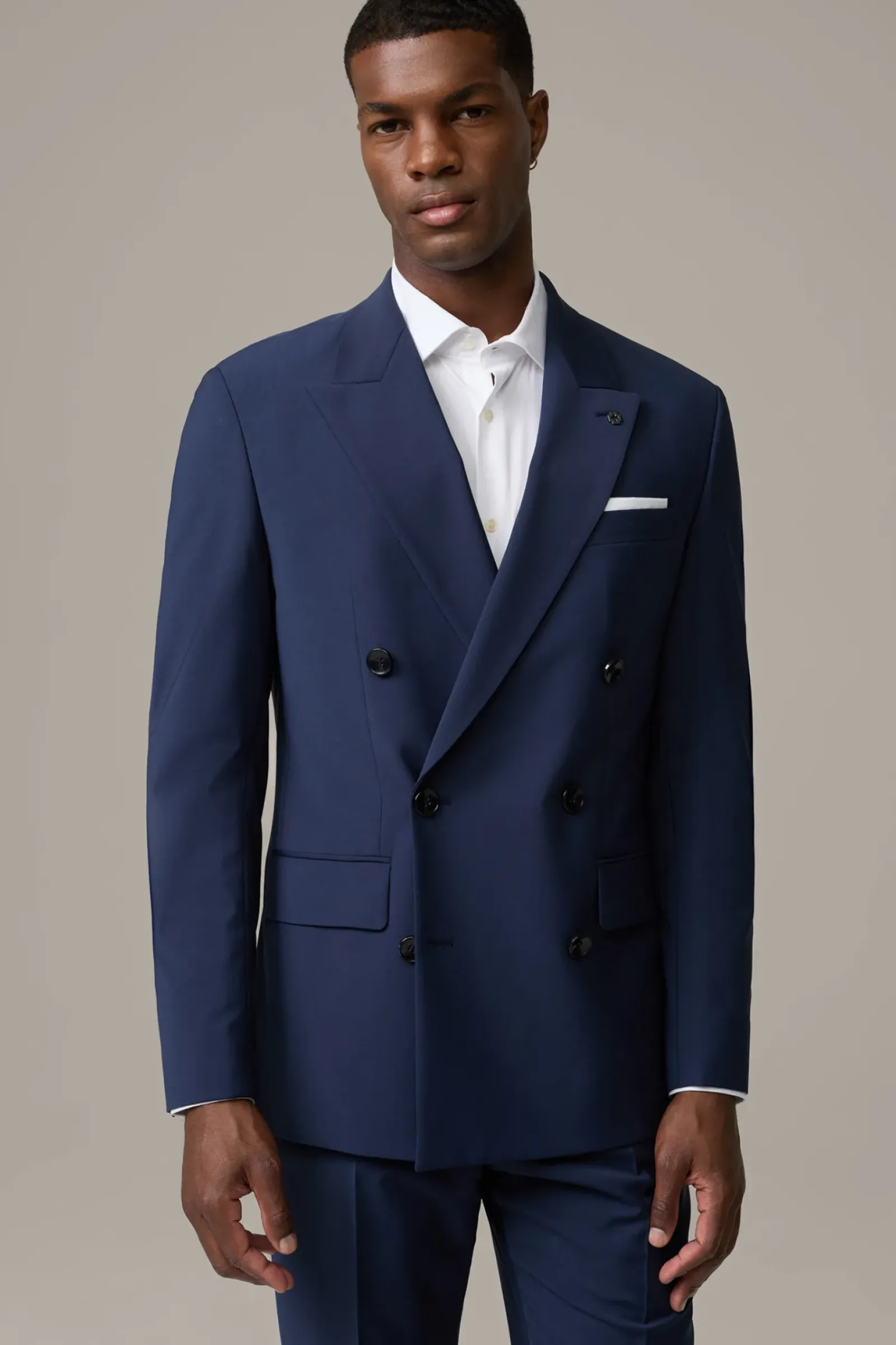 Für feine Anlässe: der Zweireiher Ashton im komfortablen Wool-Stretch mit steigendem Revers, paspelierten Pattentaschen und Bewegungsschlitzen. Vollgefüttert.