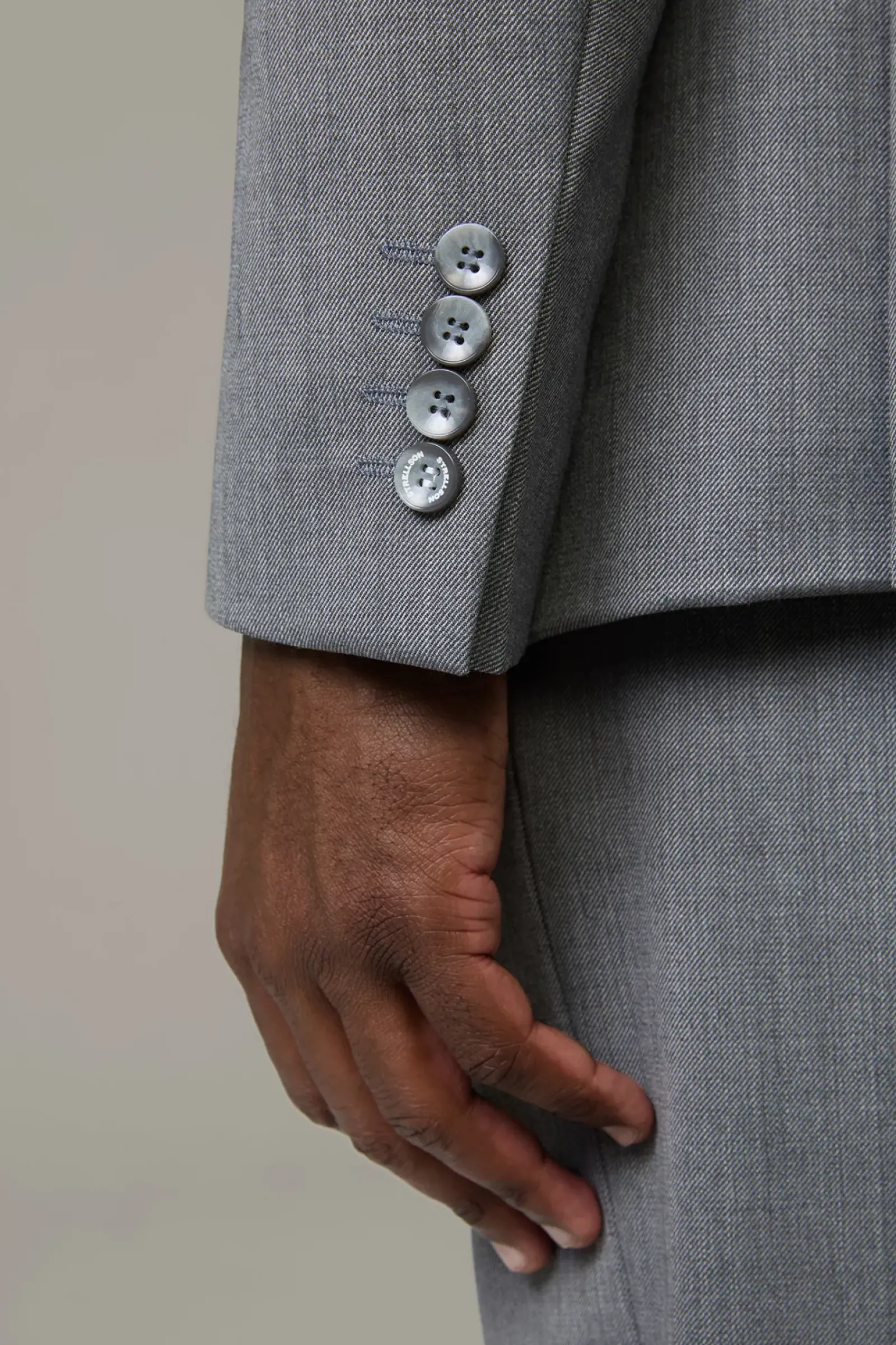 Aus stretchiger Tech-Wool mit dezenter Struktur: das Sakko Alfie mit klassischen Details wie Pattentaschen, Zierärmel- und Bewegungsschlitze. Vollgefüttert.