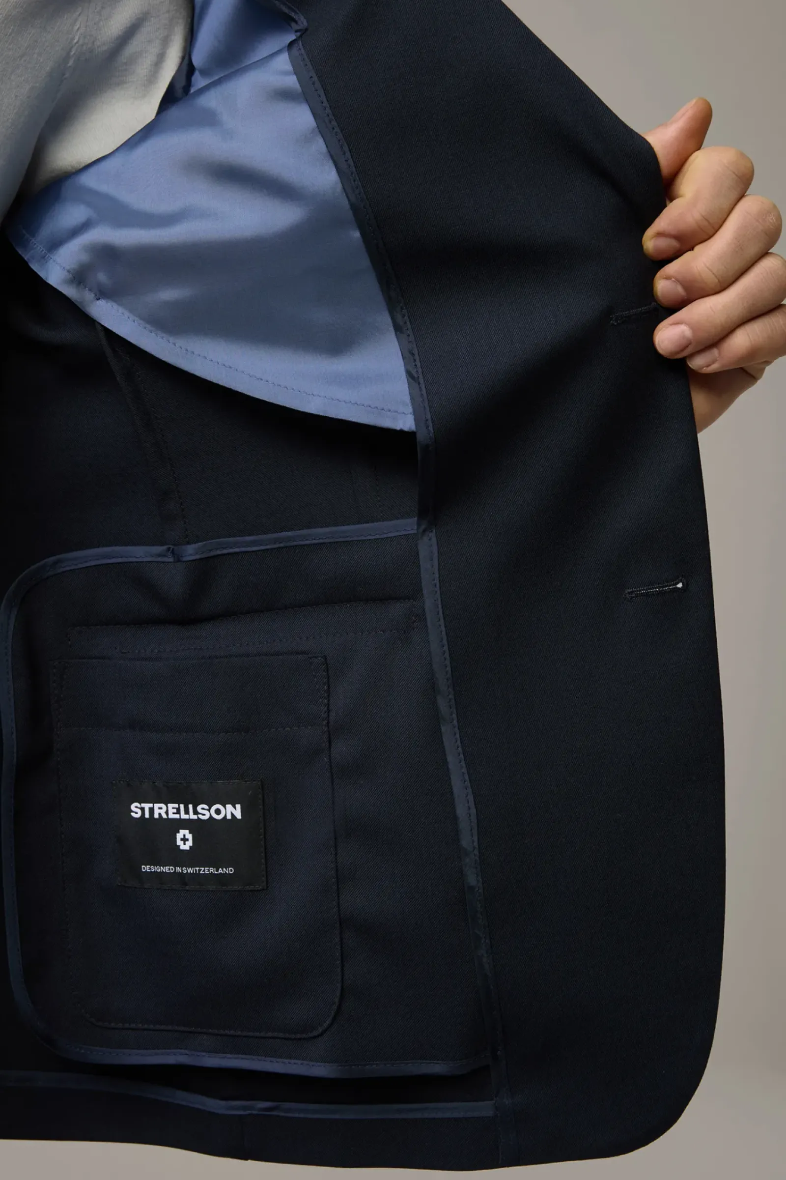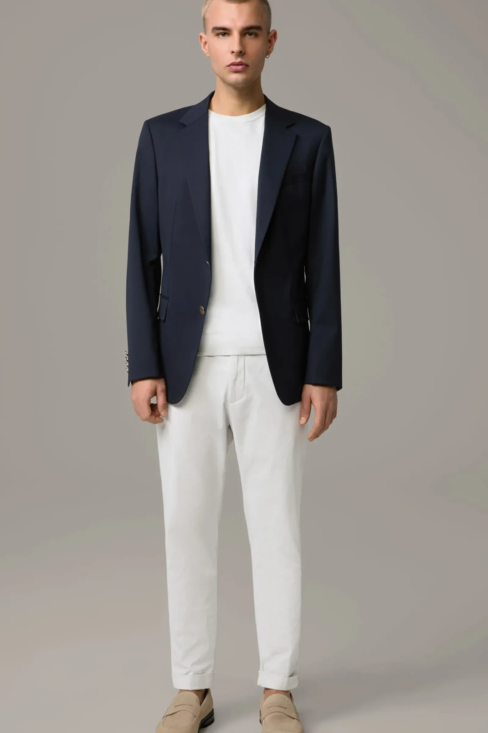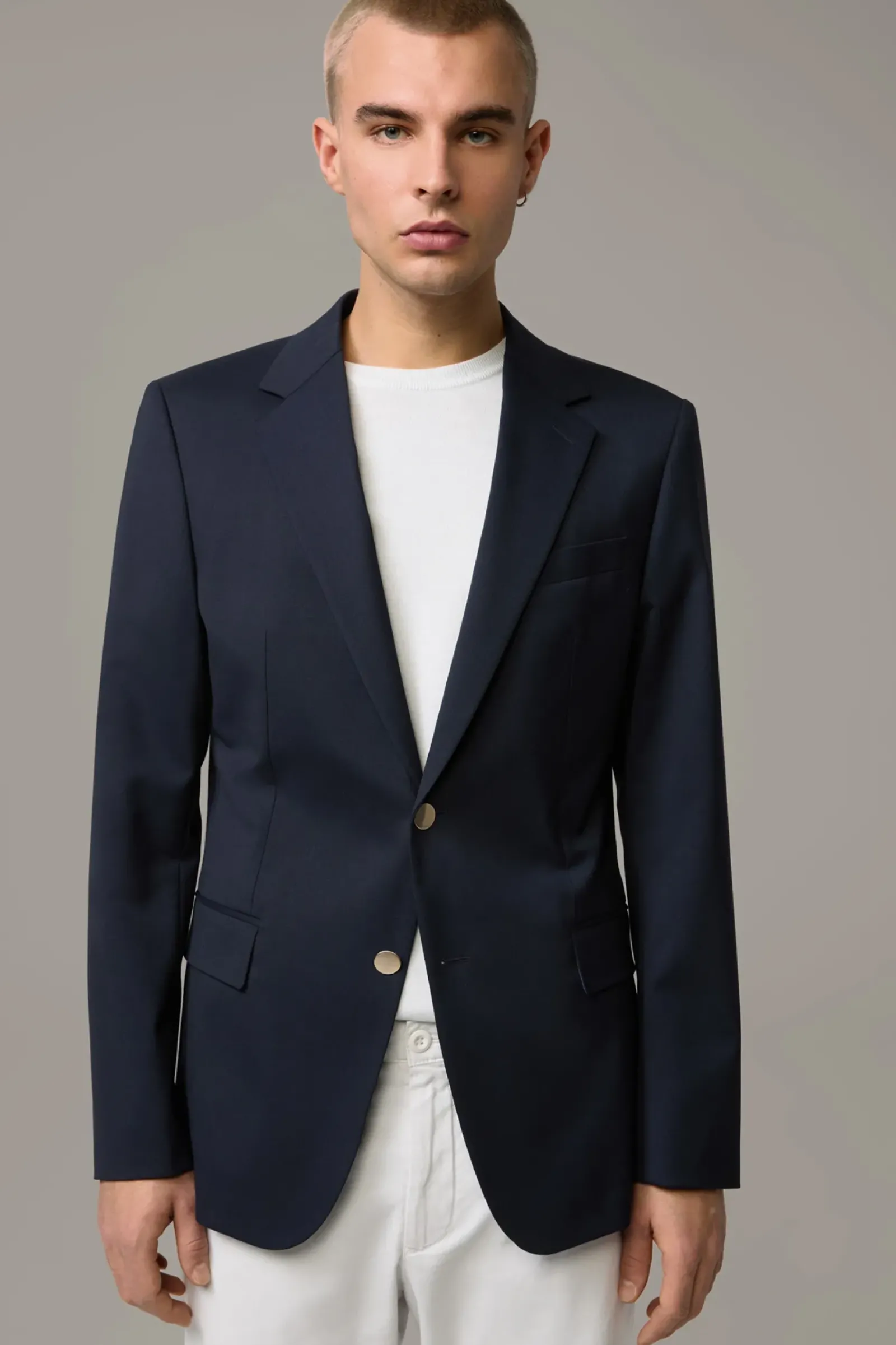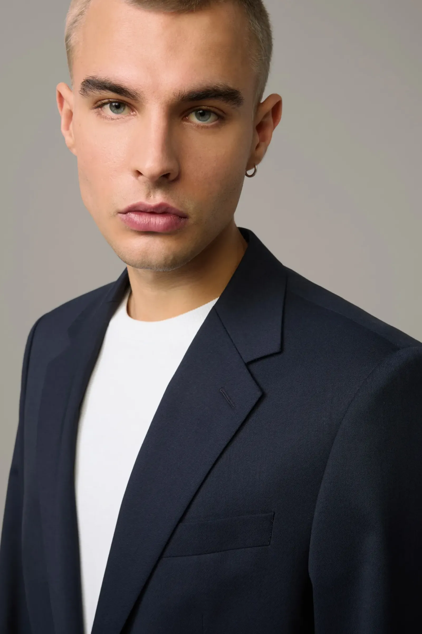 Begeistert in extraschmaler Silhouette im edlen Schurwoll-Mix: das Sakko Caidan im Einreiher-Design mit paspelierten Pattentaschen und Bewegungsschlitzen. Fließendes Teilfutter.