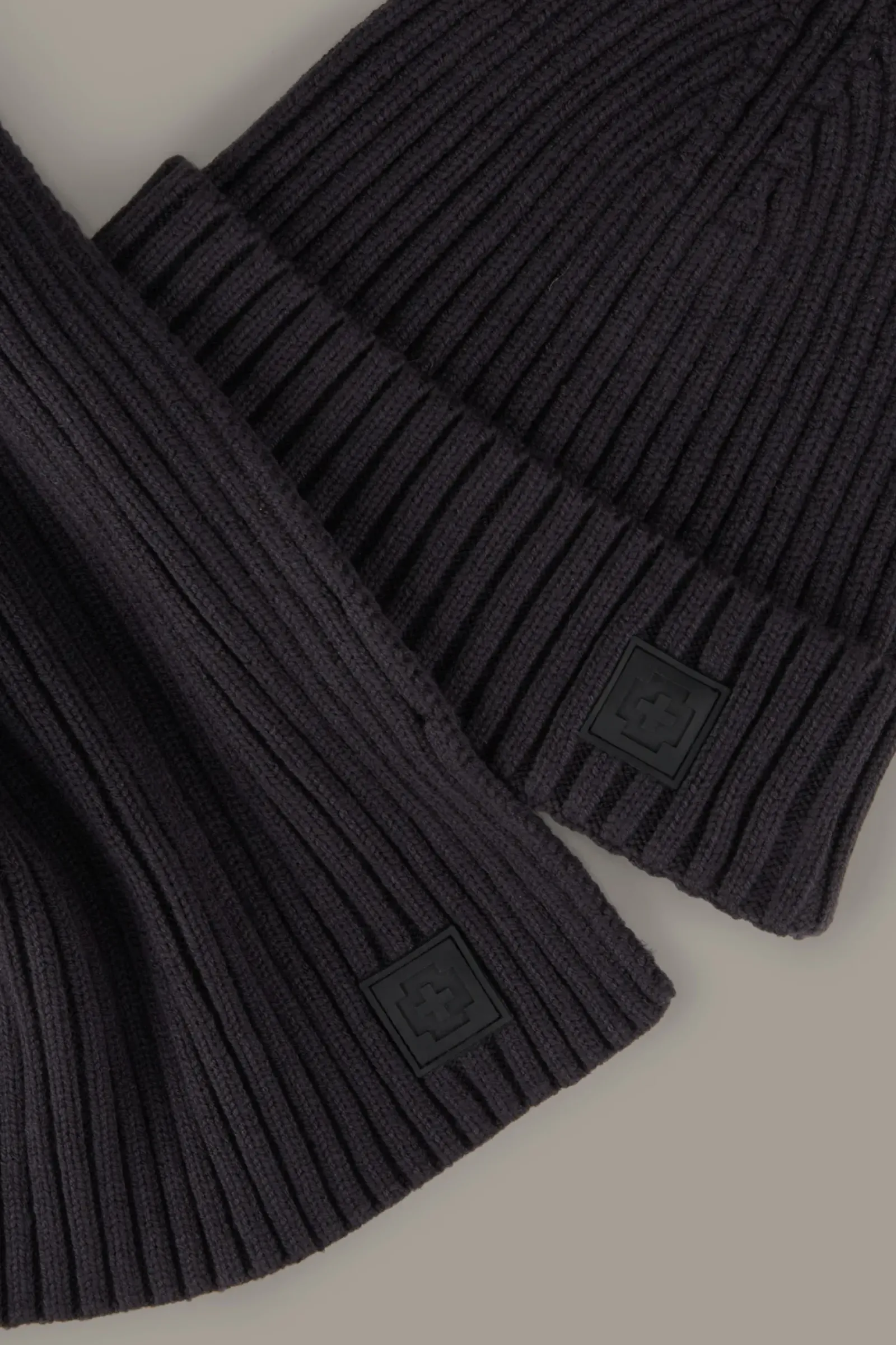Set aus Schal und Mütze in feiner Strick-Qualität mit Logo-Patch. Inklusive Aufbewahrungscase mit Zip-Verschluss.