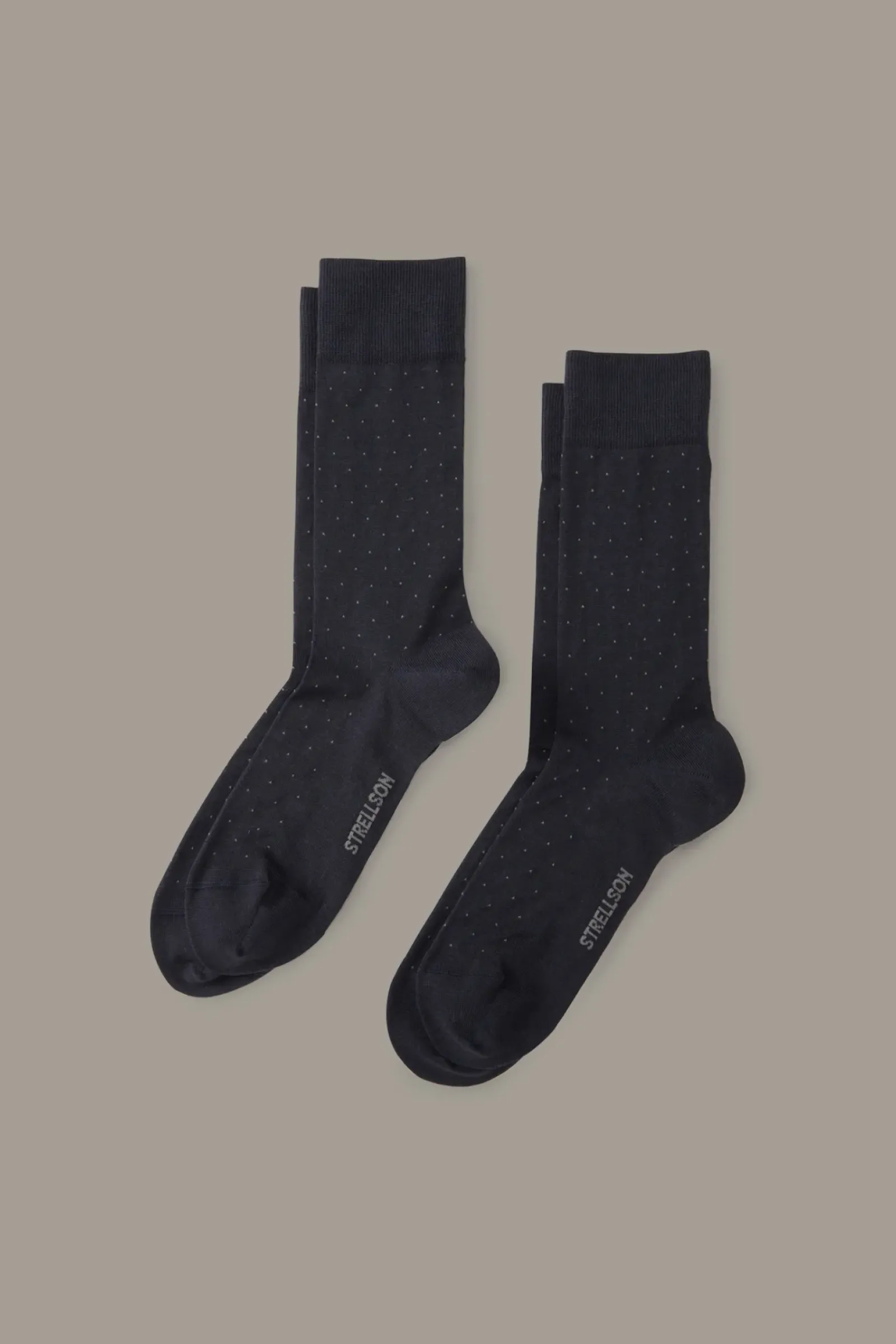 Smartes Upgrade: die fein gepunkteten Business-Socken aus mercerisierter Baumwolle mit druckfreiem Bündchen. LYCRA®-Verarbeitung sorgt für eine angenehme Passform.