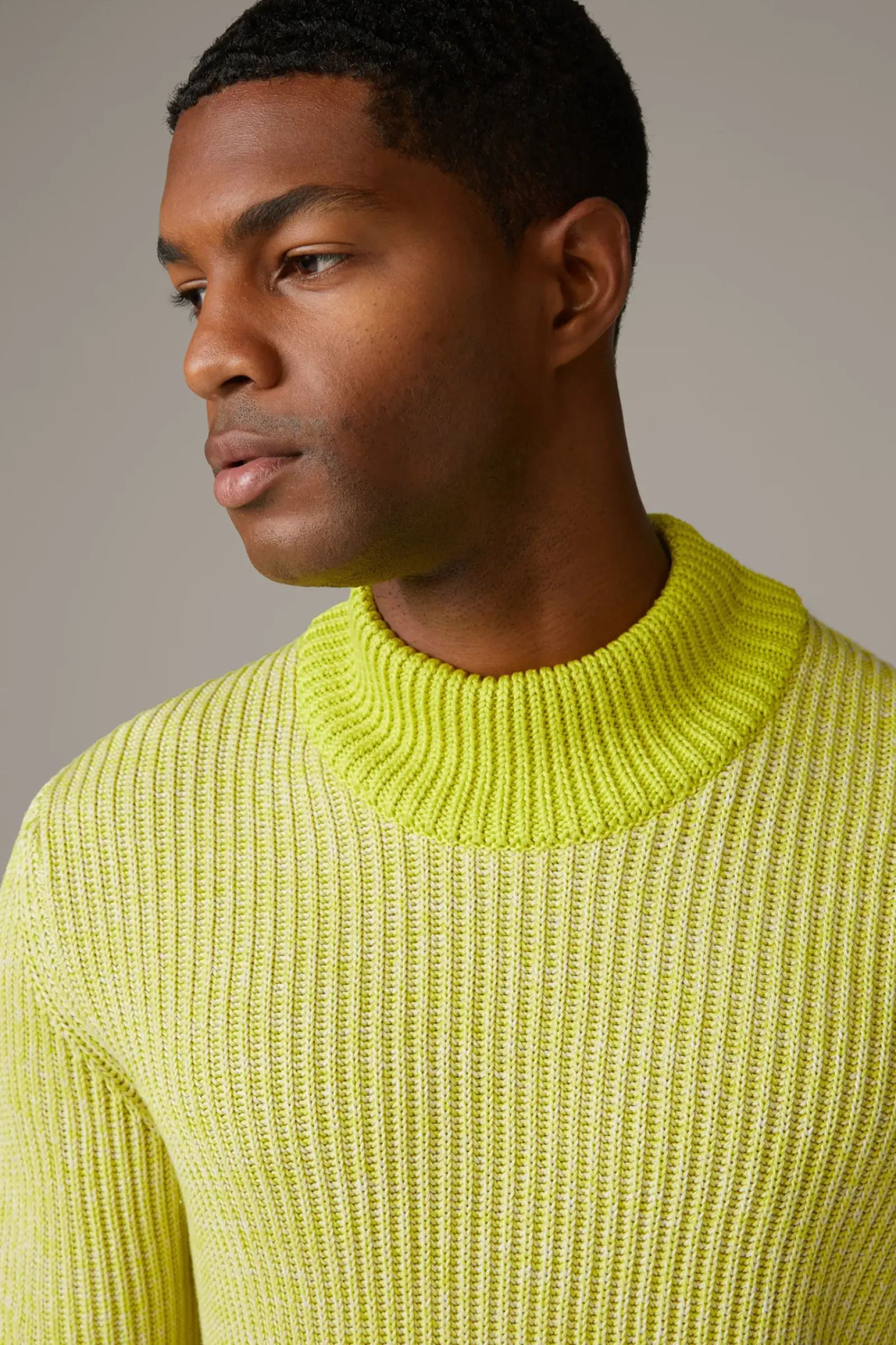 Als stilvoller Allrounder für moderne Looks: der Pullover Adrian aus purer Baumwolle und im gerippten Design. Breite Rippbündchen und der Mockneck-Kragen setzen stylische Akzente.