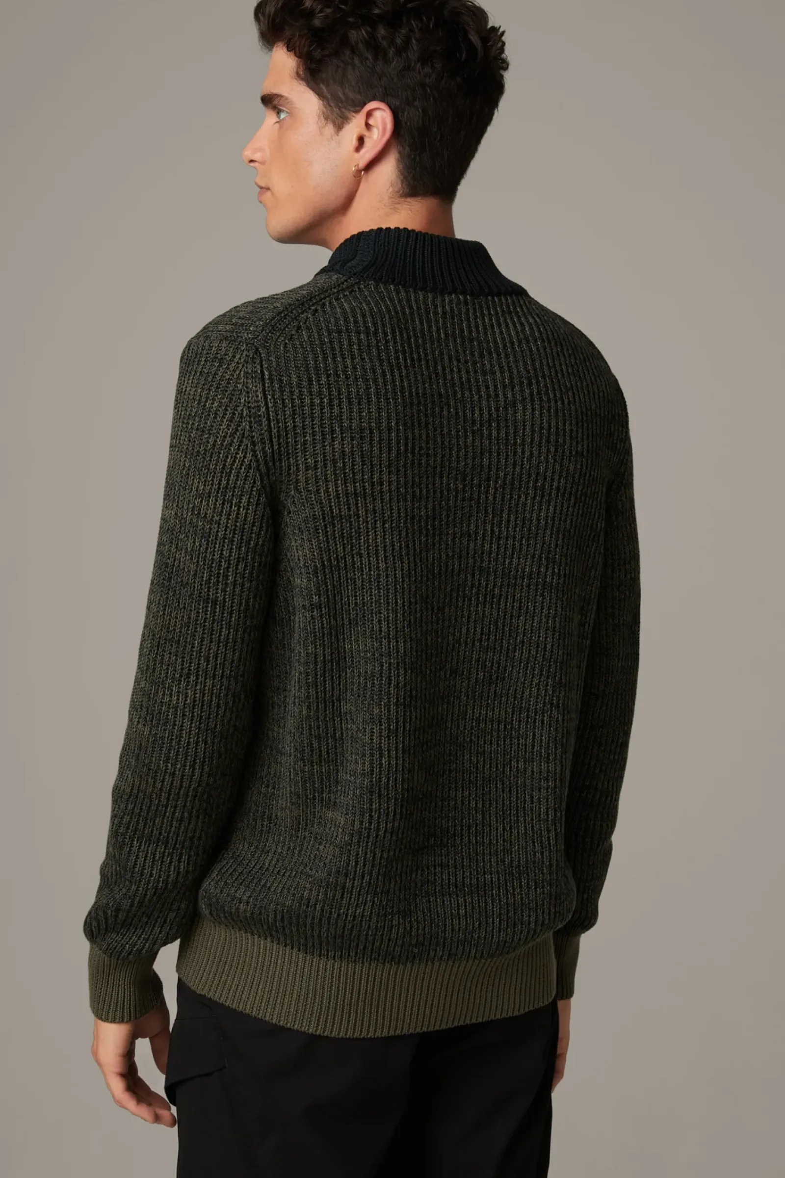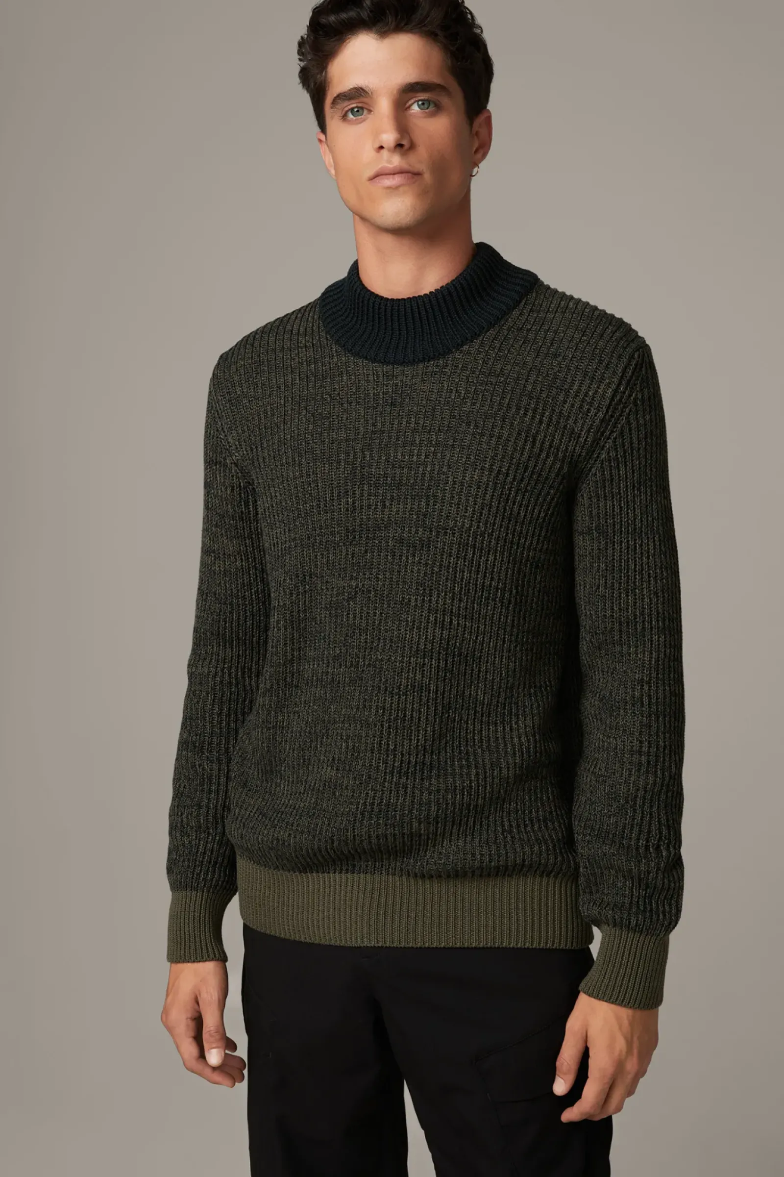 Als stilvoller Allrounder für moderne Looks: der Pullover Adrian aus purer Baumwolle und im gerippten Design. Breite Rippbündchen und der Mockneck-Kragen setzen stylische Akzente.