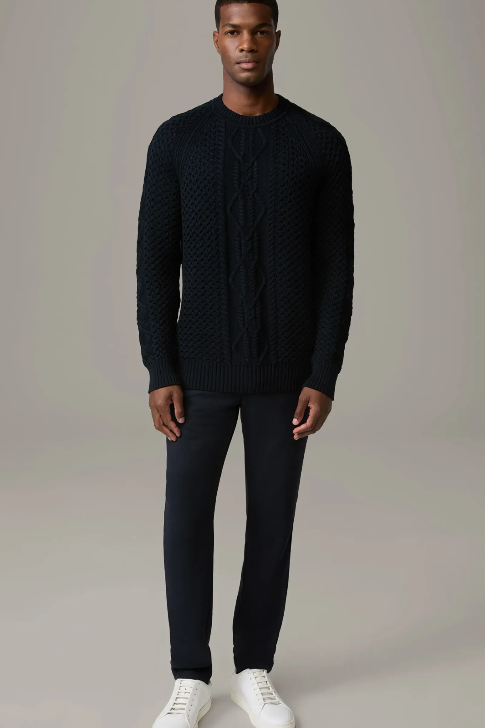 Der Pullover Adrian überzeugt im abwechslungsreichen Strick-Mix aus purer Bio-Baumwolle als modernes Essential. Mit Rundhalsausschnitt und Raglanärmeln.