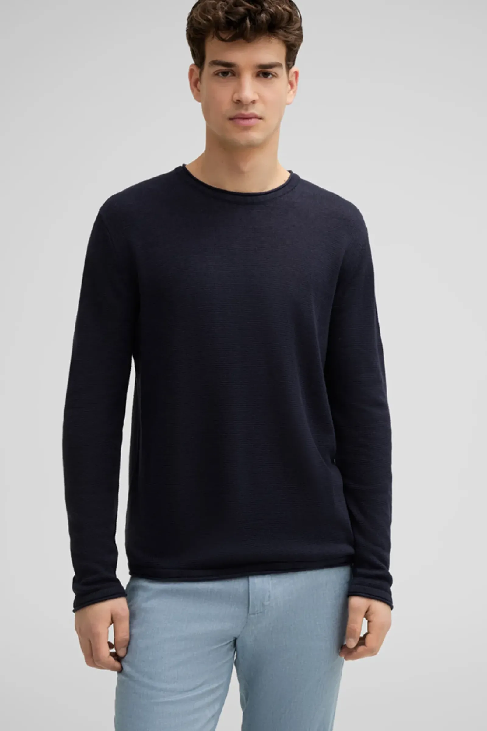 Edler Allrounder: der Pullover Levi im angenehmen Leinenmix mit lässigen Details wie Rollsäumen und überschnittenen Schultern.