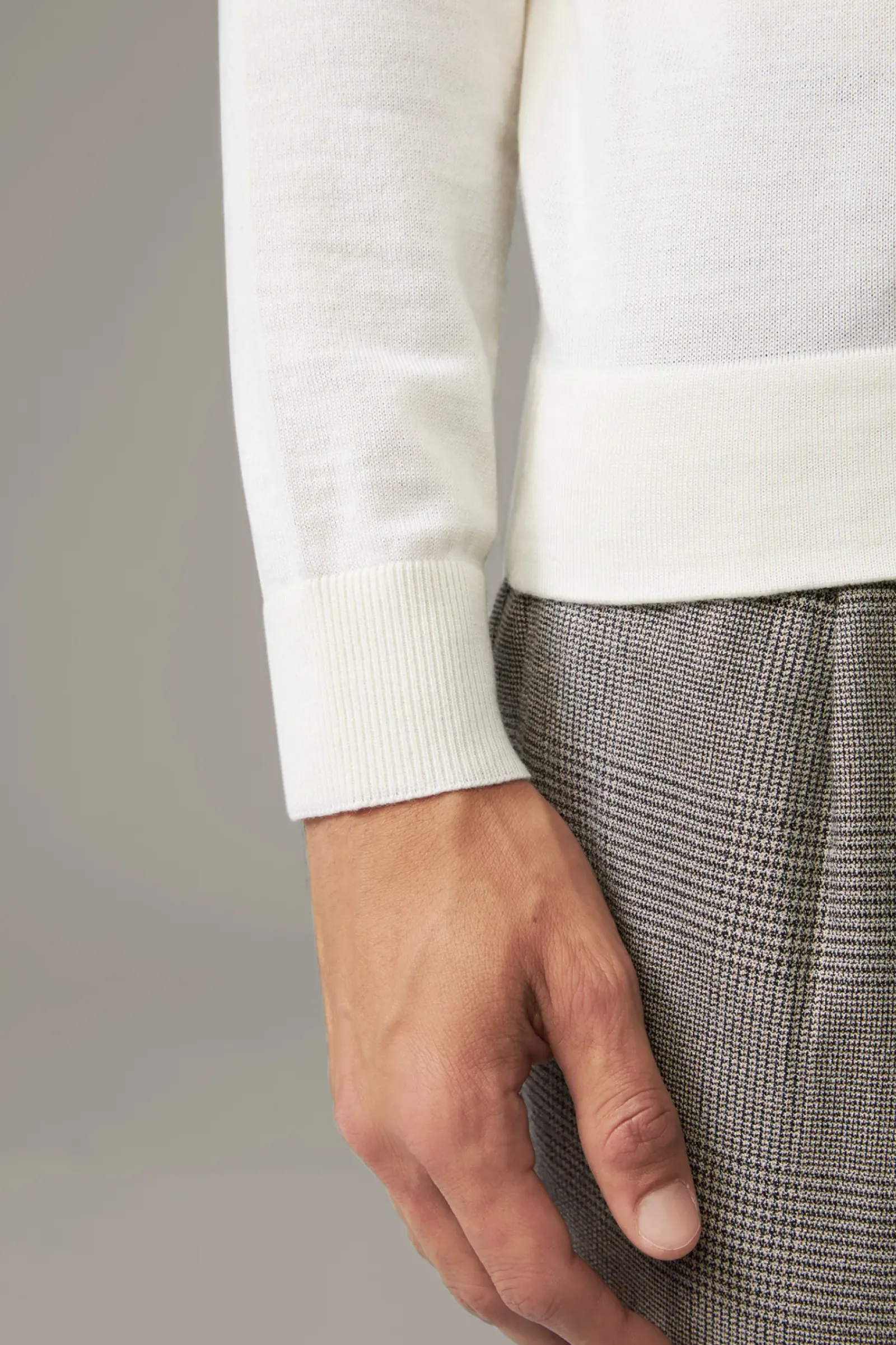 Stilvoller Allrounder: der Pullover Marek mit Stehkragen und Rippbündchen. Weiche Schurwoll-Qualität mit feinen Ziernähten.