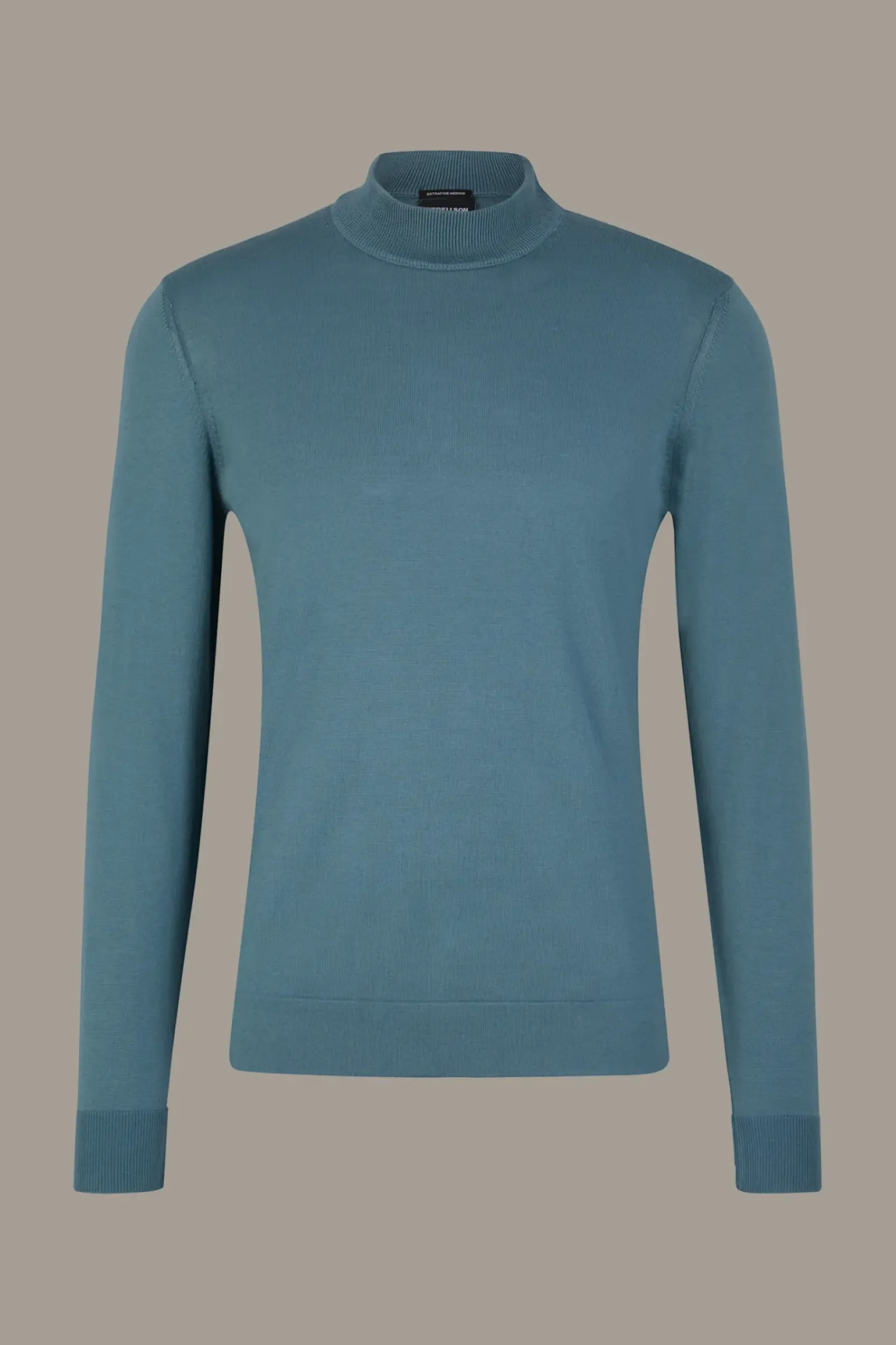 Stilvoller Allrounder: der Pullover Marek mit Stehkragen und Rippbündchen. Weiche Schurwoll-Qualität mit feinen Ziernähten.