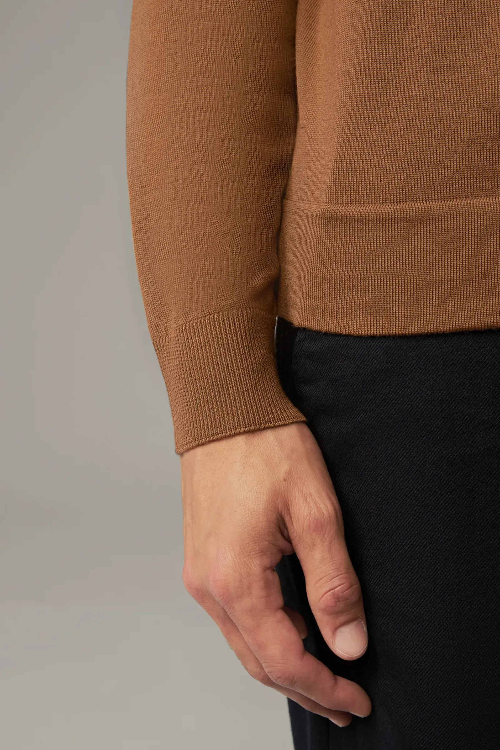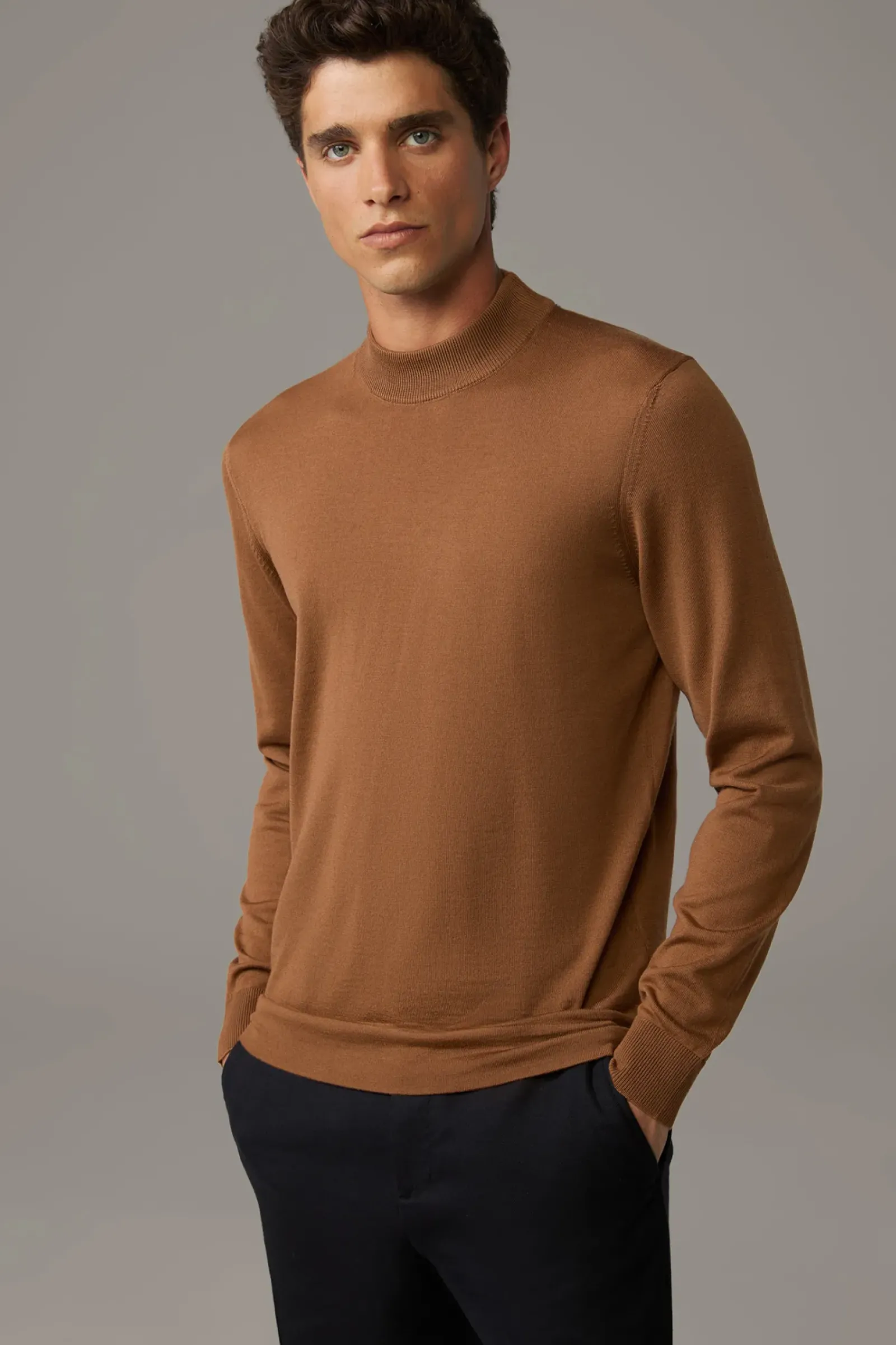 Stilvoller Allrounder: der Pullover Marek mit Stehkragen und Rippbündchen. Weiche Schurwoll-Qualität mit feinen Ziernähten.