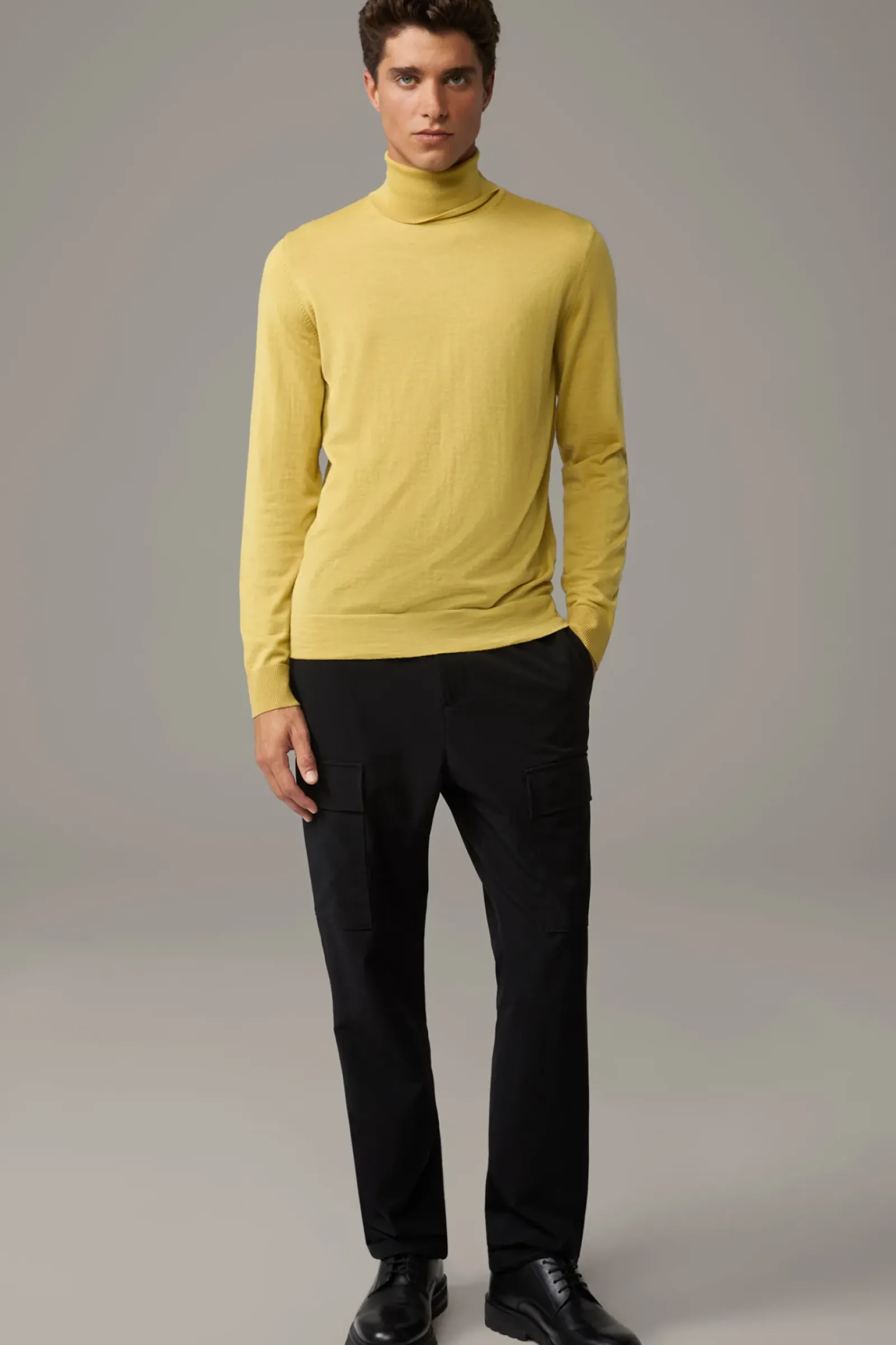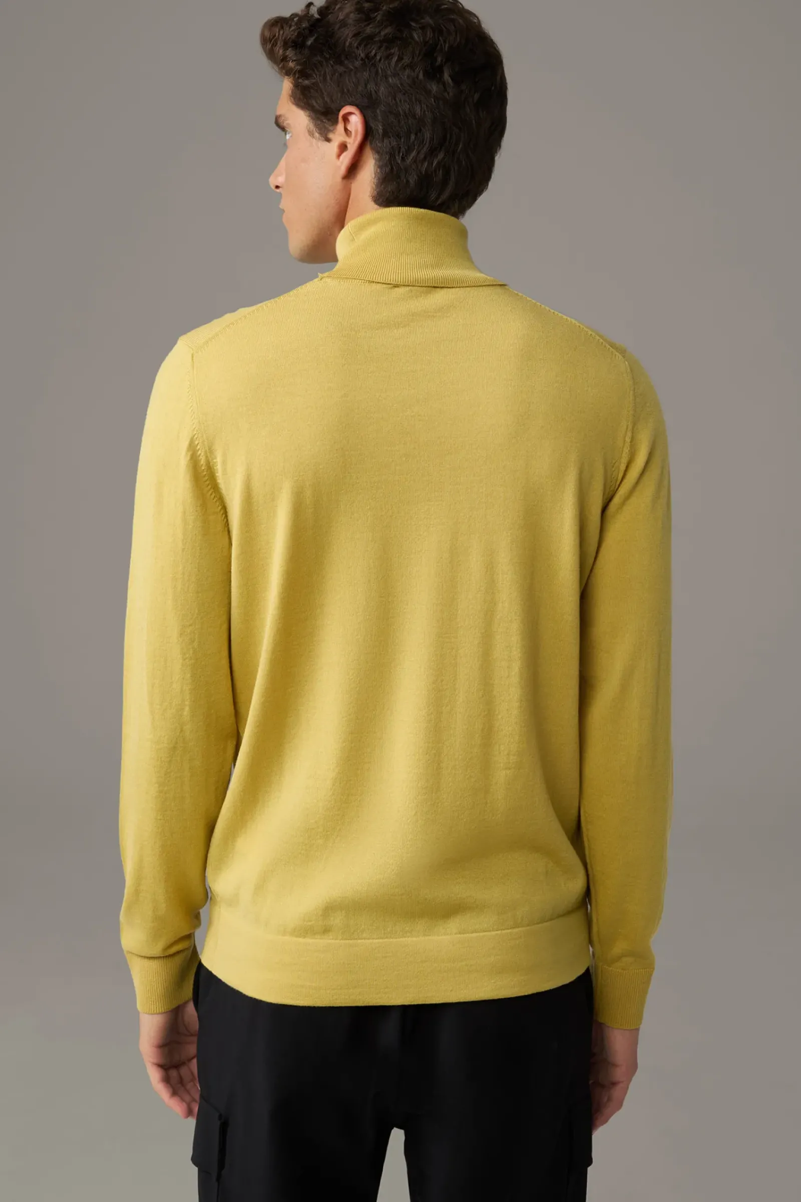 Klassisches Basic-Piece: Der Rollkragenpullover Marek mit Rippbündchen und feinen Ziernähten. Aus reiner Schurwolle.