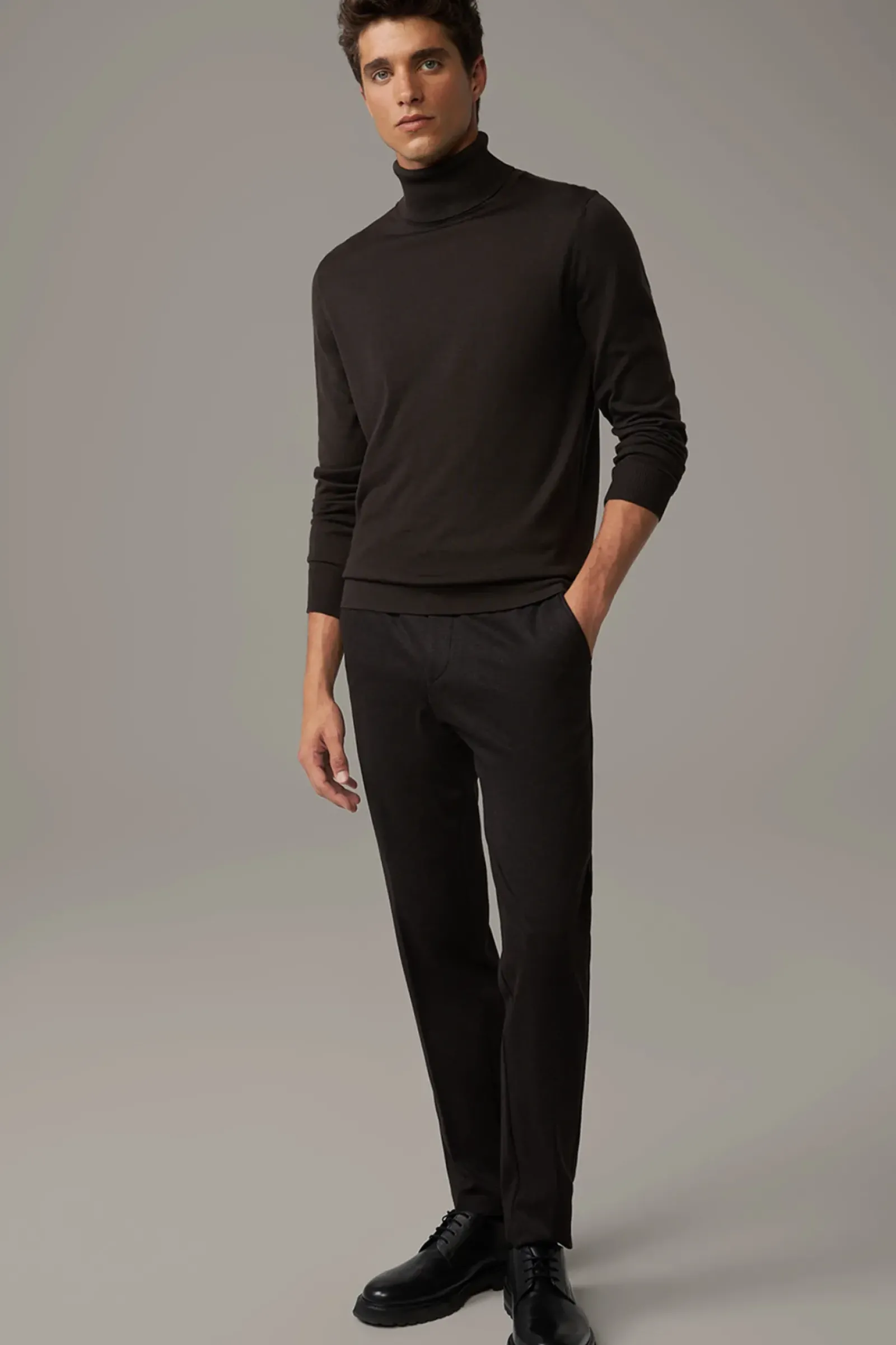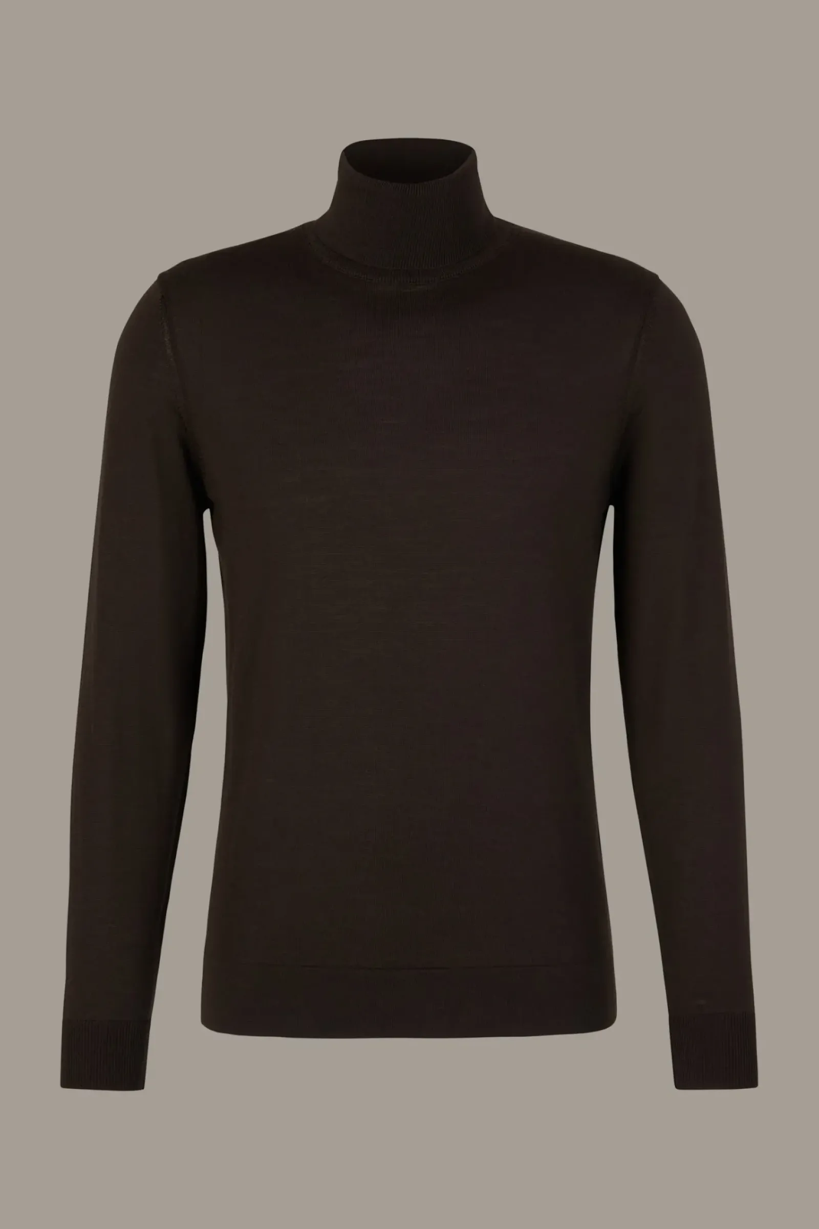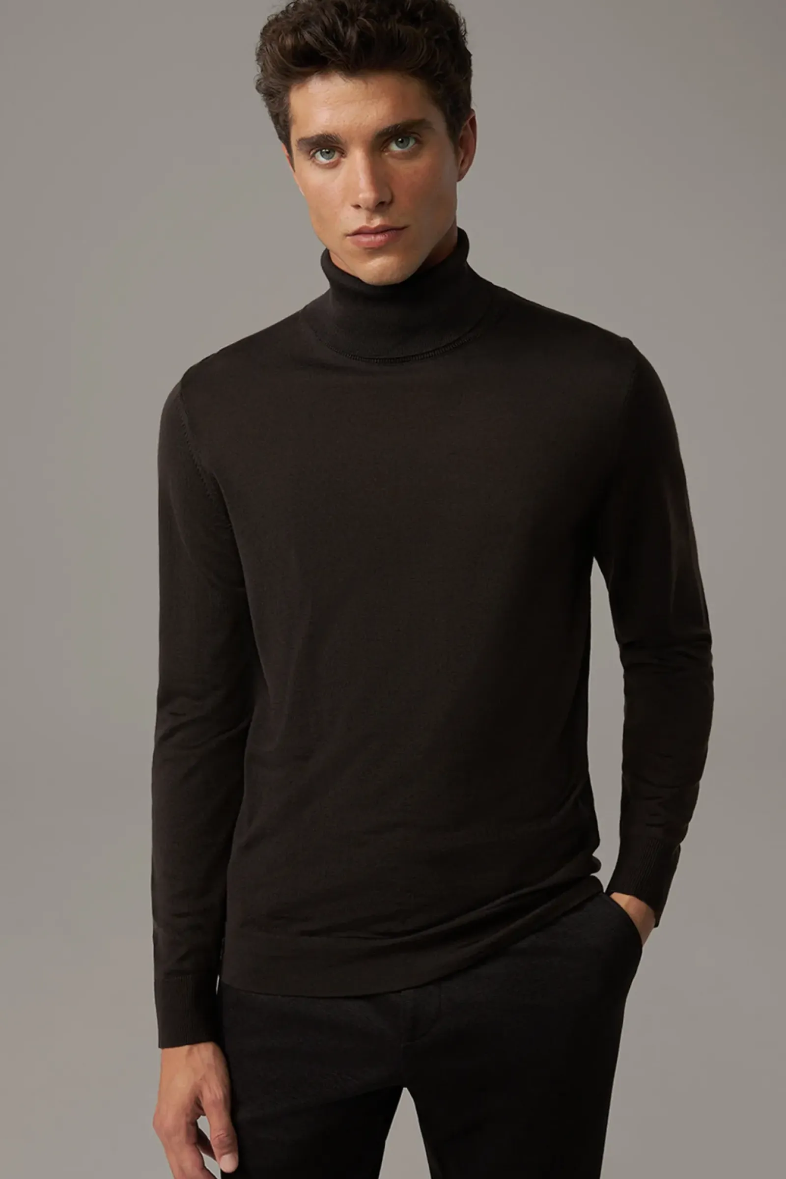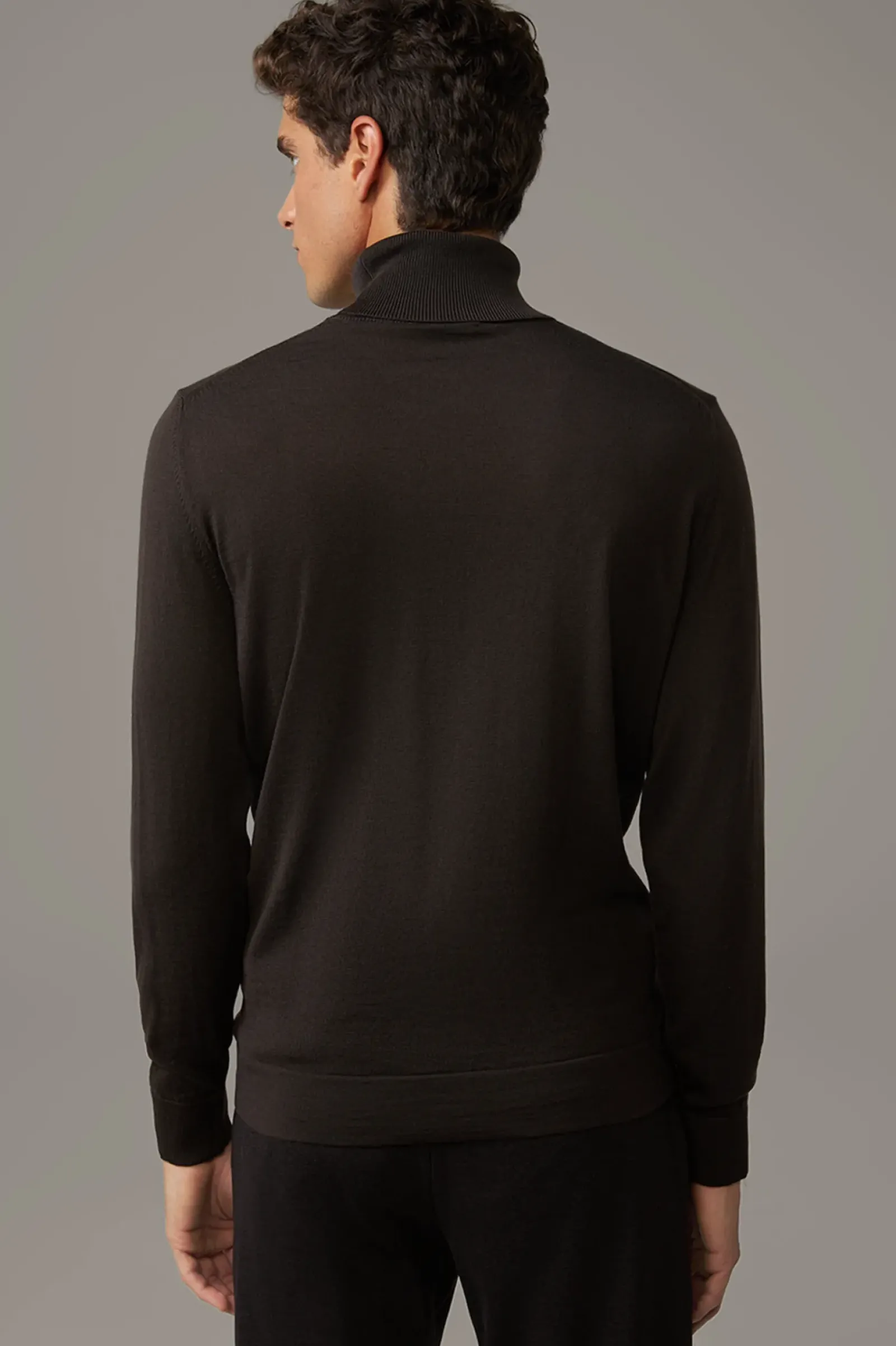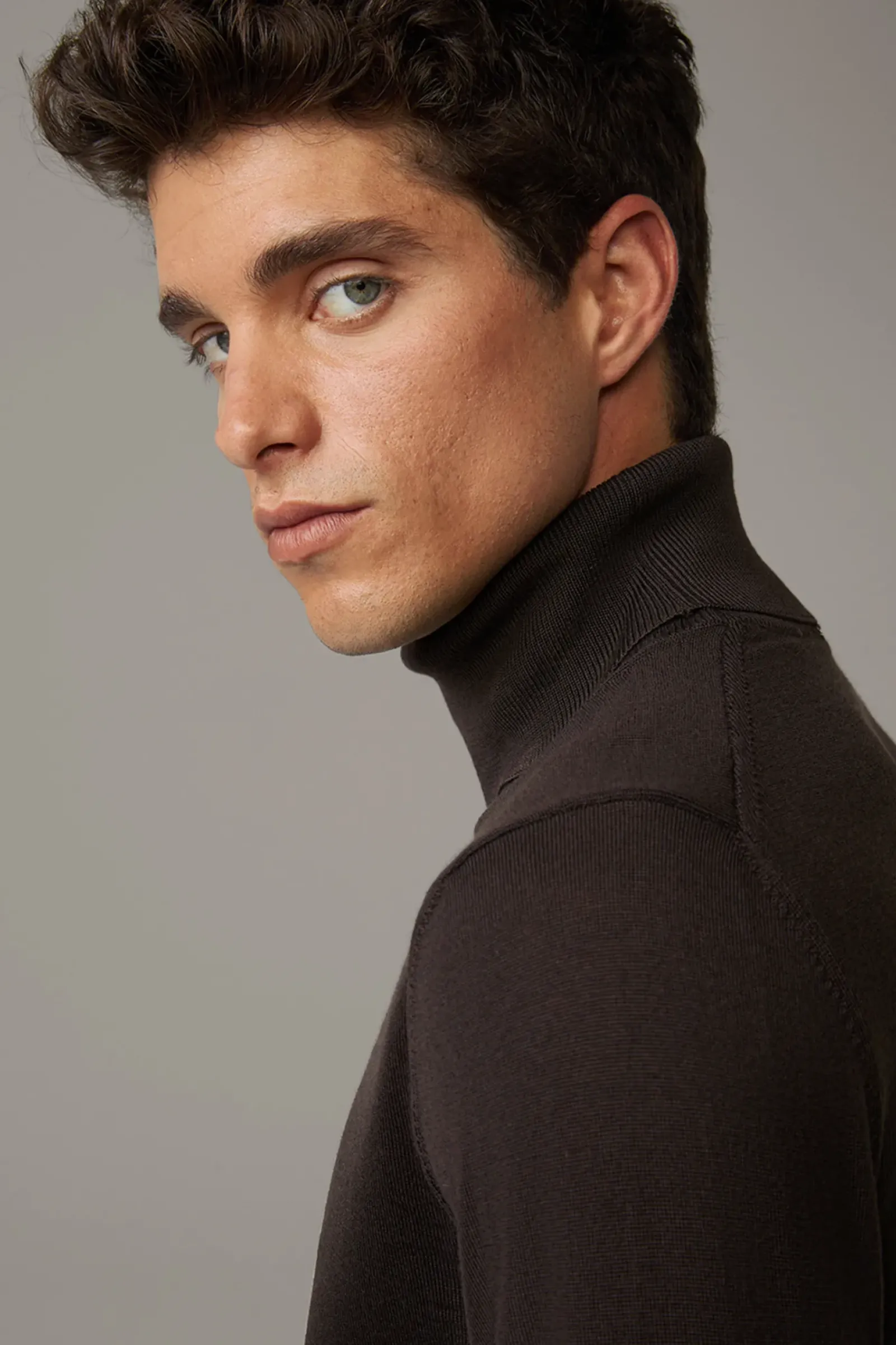 Klassisches Basic-Piece: Der Rollkragenpullover Marek mit Rippbündchen und feinen Ziernähten. Aus reiner Schurwolle.