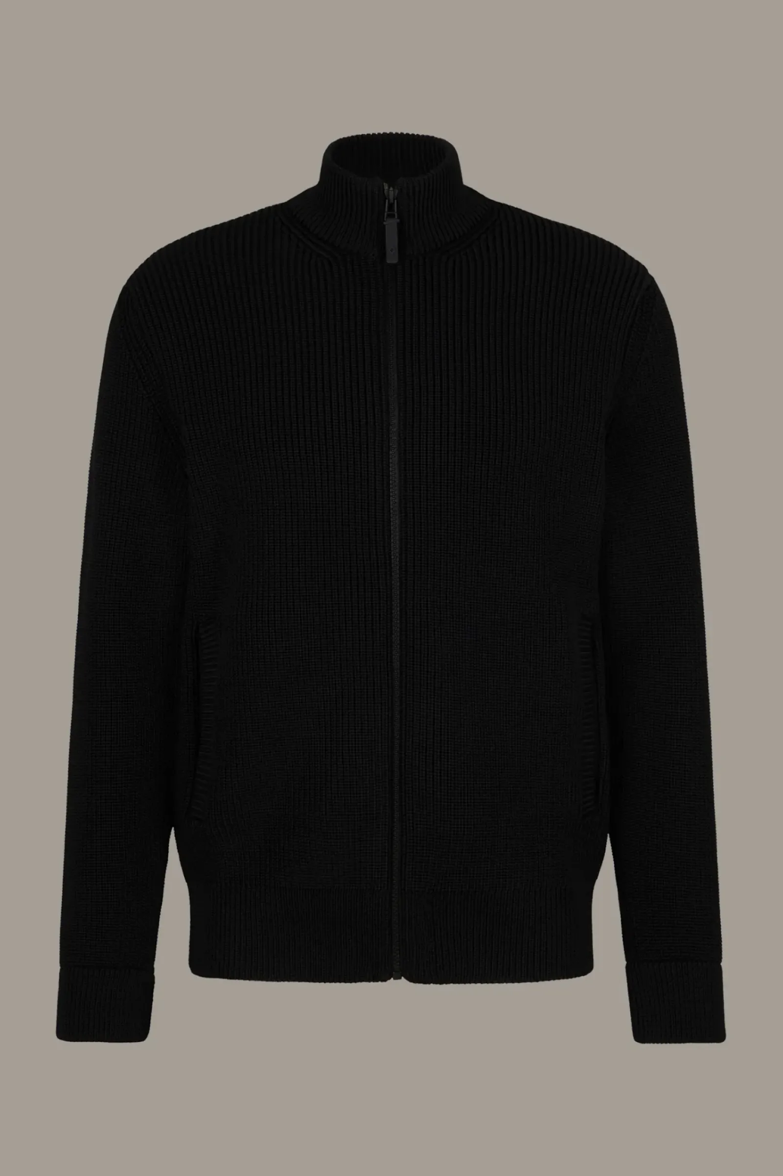 Begeistert als modernes Style-Update: die Strickjacke Victor mit geripptem Stehkragen, durchgehendem Zipper und Leistentaschen. Mit Rubber-Logo-Flag.
