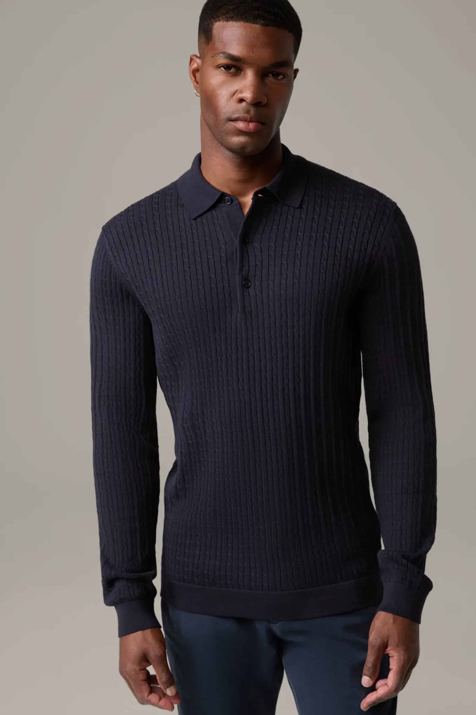 Durch den Polokragen und eine kurze Knopfleiste erhält der Strickpullover Kito einen lässigen Style-Twist, ergänzt durch das moderne Strukturmuster. Aus reinem Cotton.