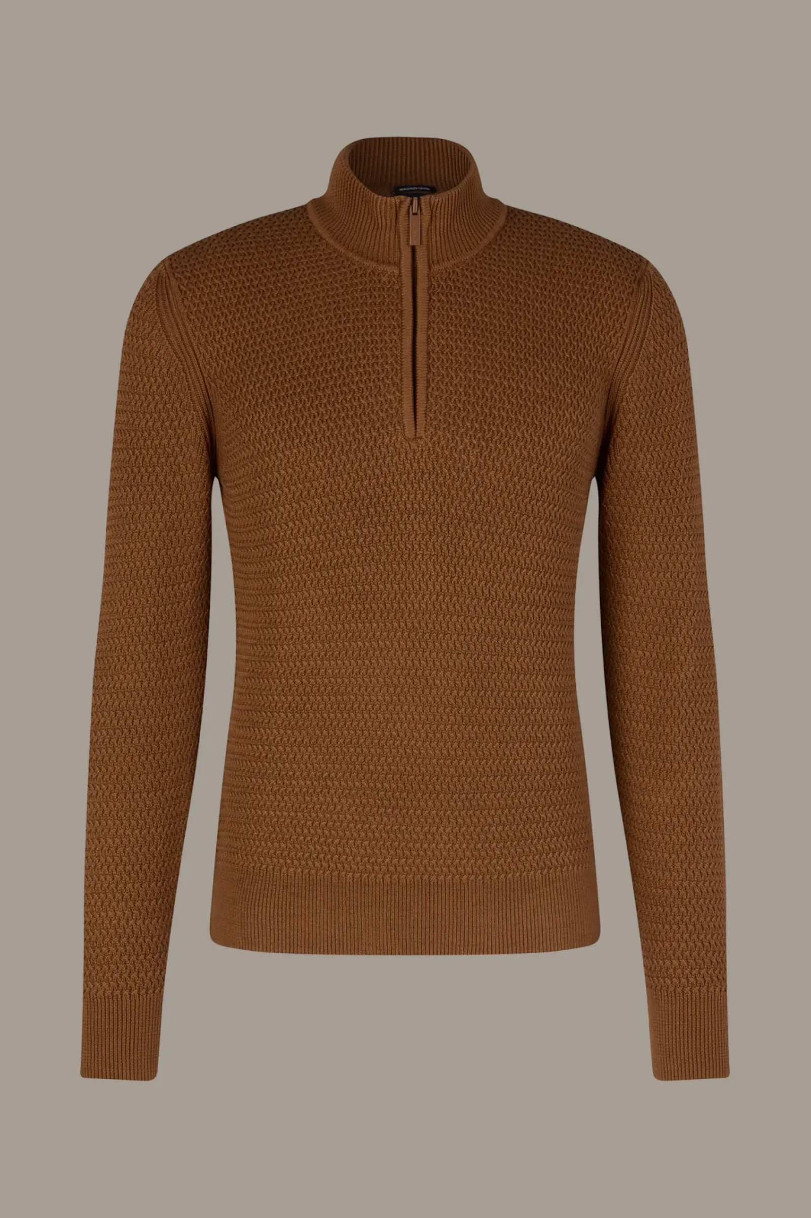 Komfortabler Klassiker: der Troyer Adrian mit Stehkragen und kurzem Zipper. Rippbündchen und Ziernähte ergänzen das Design. Aus reinem Cotton.