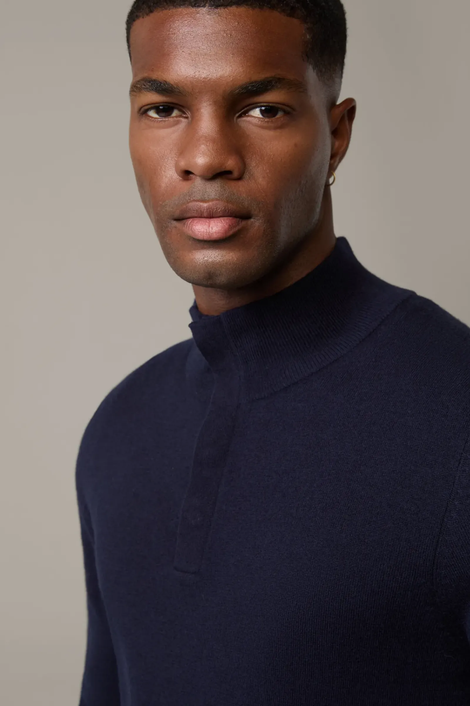 Favorit zu Styles von klassisch bis smart casual: der Troyer Luka im melierten Look aus stretchiger Wolle mit Rippstrickkragen und verdeckter Midi-Knopfleiste.