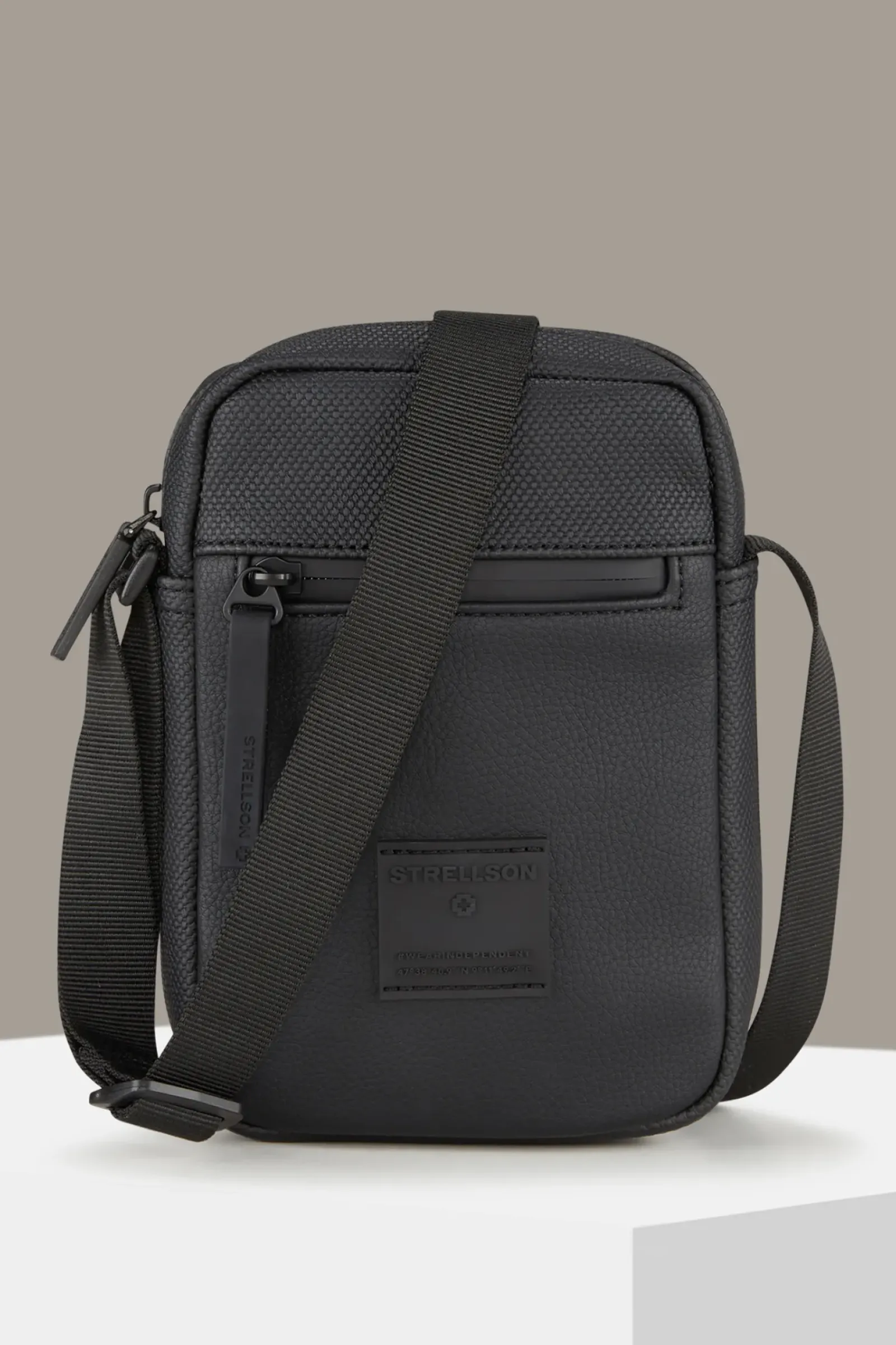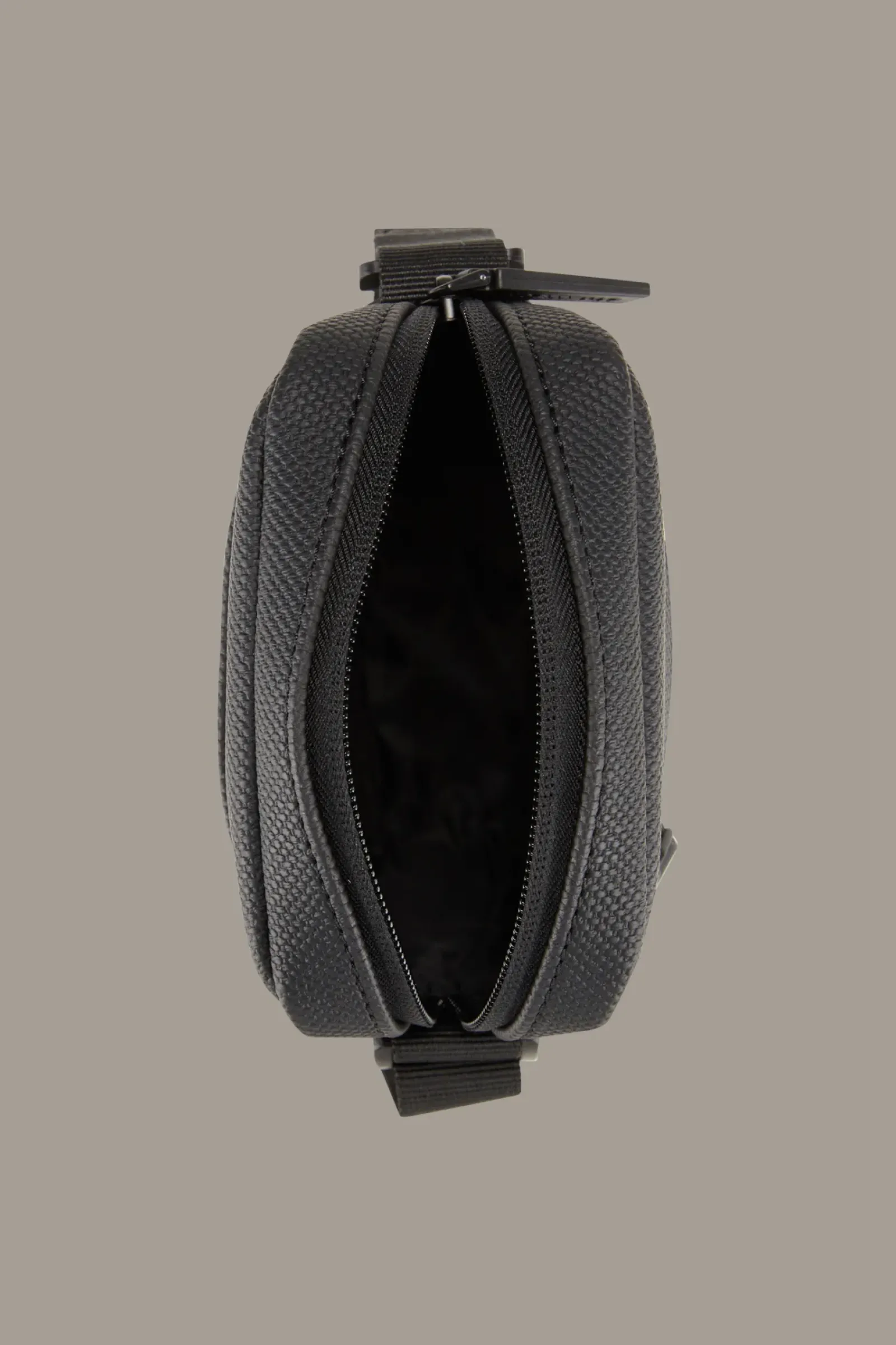 Highlight für sportive Looks: die Schultertasche Westferry Clint aus strukturiertem Faux-Leder mit klassisch justierbarem Riemen, Signature-Patch und funktionalen Fächern.