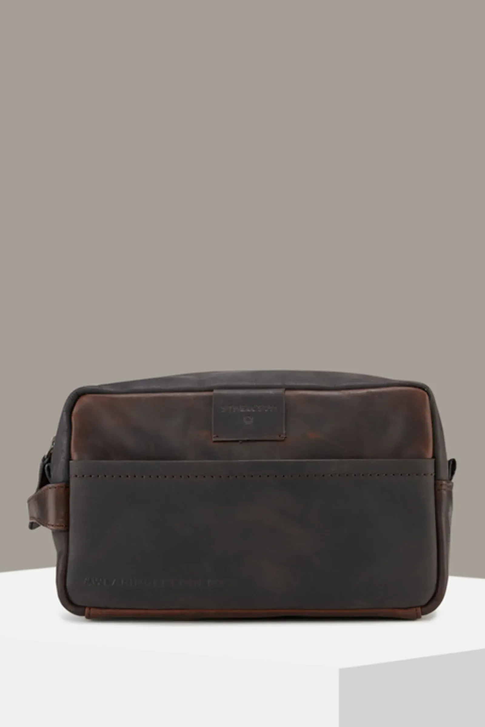 Begeistert aus edlem Leder: die Kulturtasche Brick Lane Dick im rechteckigen Format mit ausreichend Strauraum für Bad-Essentials. Mit Logo-Prägung.