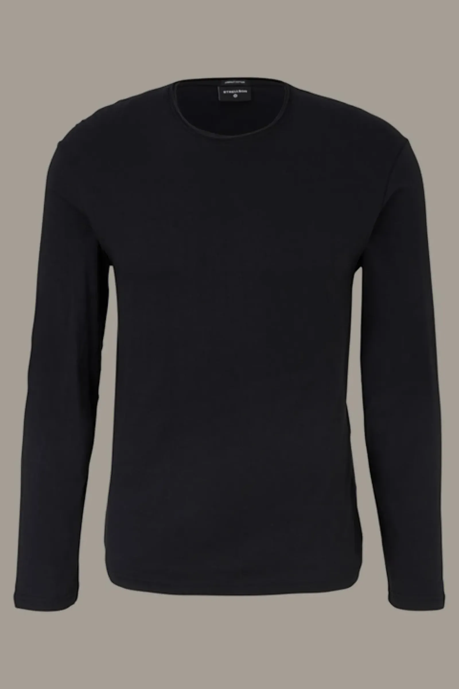 Perfektes Layering-Match: das Longsleeve Tyler aus Compact Cotton mit Rollsaumkante am Rundhalsausschnitt, ergänzt durch ein rückseitiges Rubber-Patch.