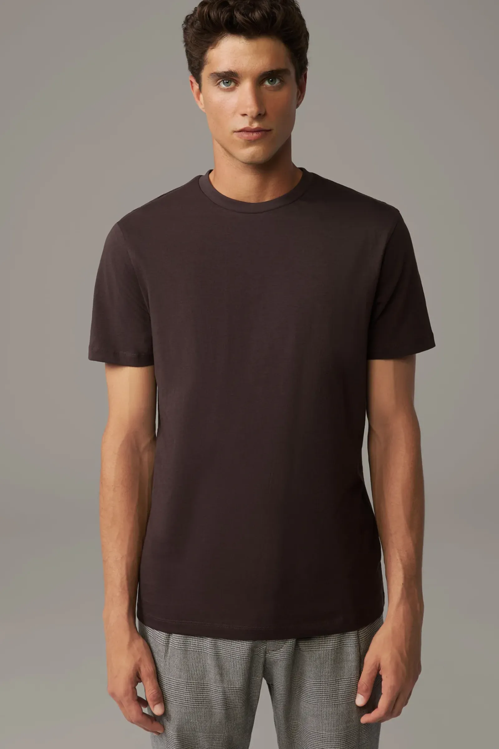 Cooler Fashion-Allrounder: das T-Shirt Clark aus dicht gewebtem Compact Cotton mit Rundhalsausschnitt und doppelt vernähten Abschlüssen.