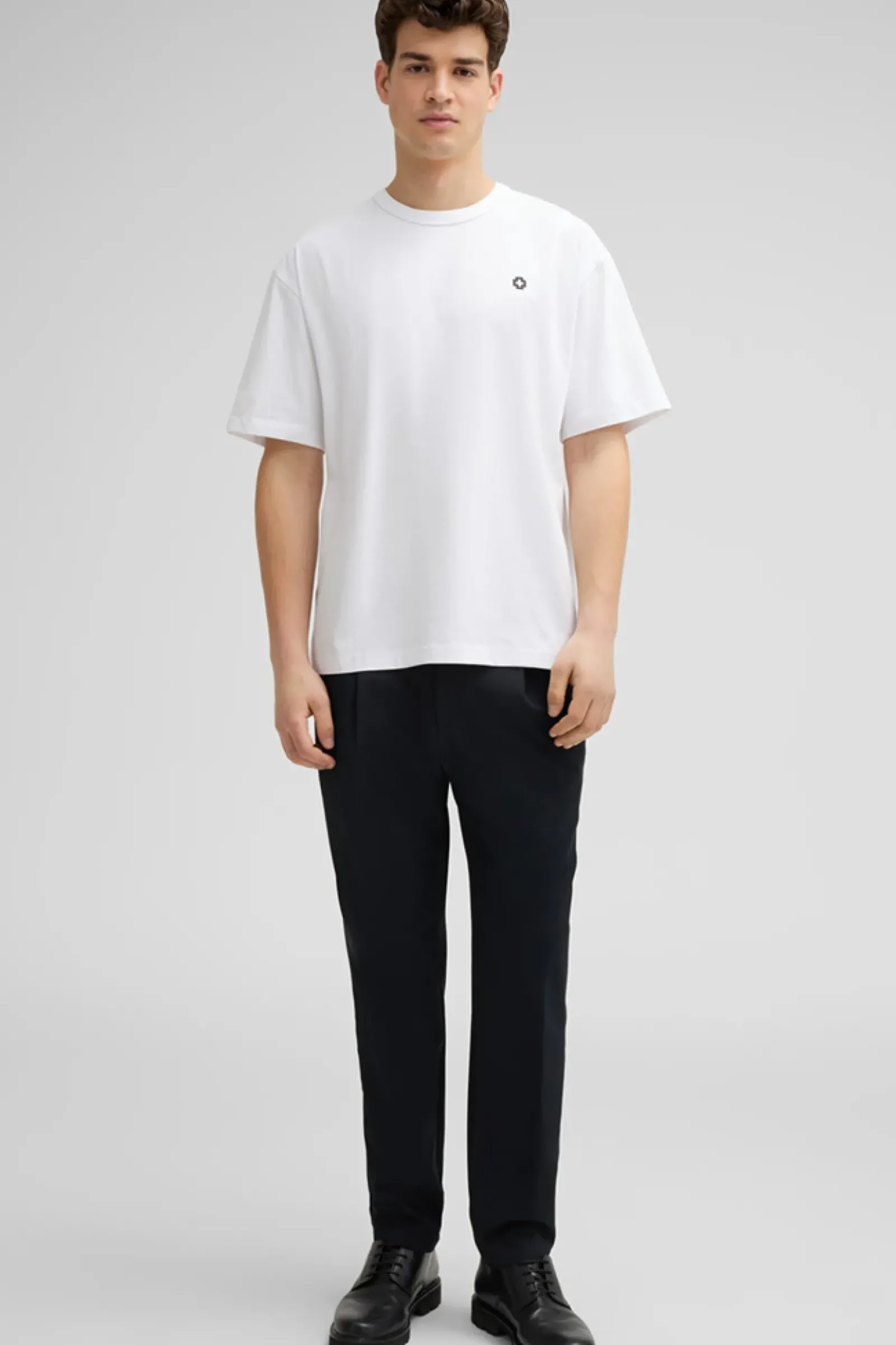 Basic-Item für urbane Looks: das T-Shirt Thies aus Bio-Cotton mit Rundhalsausschnitt, doppelt vernähten Abschlüssen und Signature-Print auf der Rückseite.