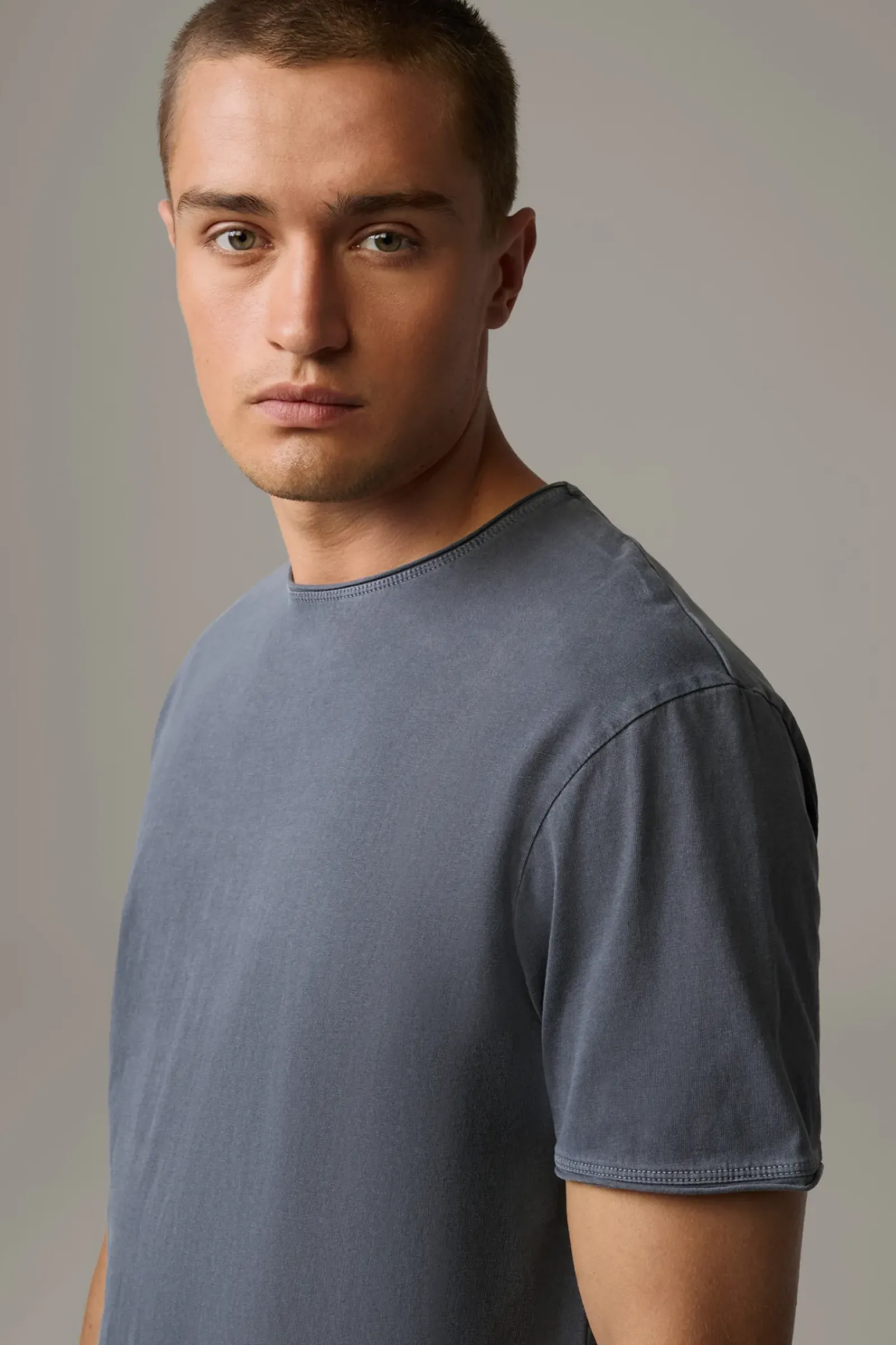 T-Shirt Tyler aus Cotton mit Used-Finish, akzentuiert durch einen Rundhalsausschnitt und Rollsaum-Details.