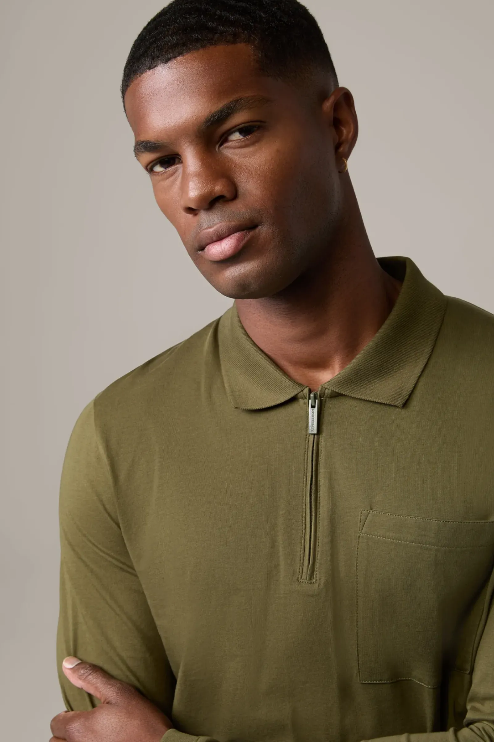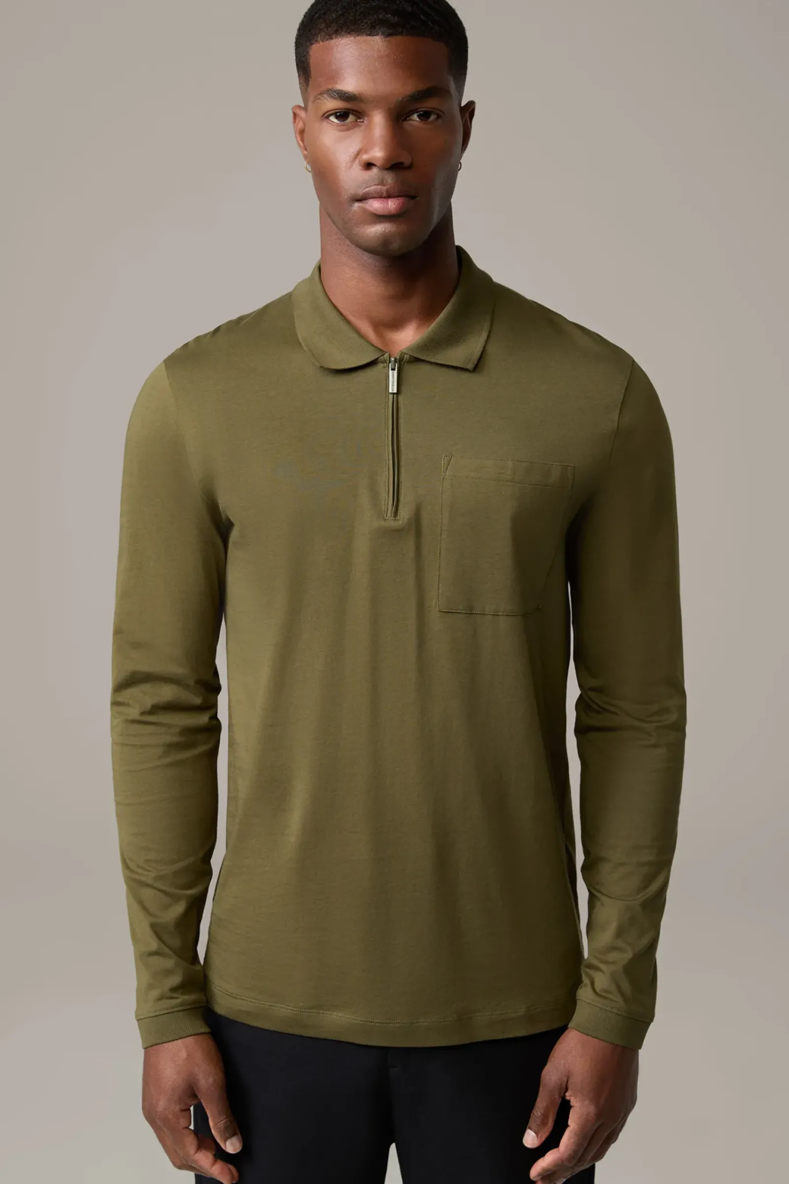 Komfortables Essential aus reinem Cotton: das Longsleeve Clark mit Polokragen, Zipper und aufgesetzter Brusttasche.